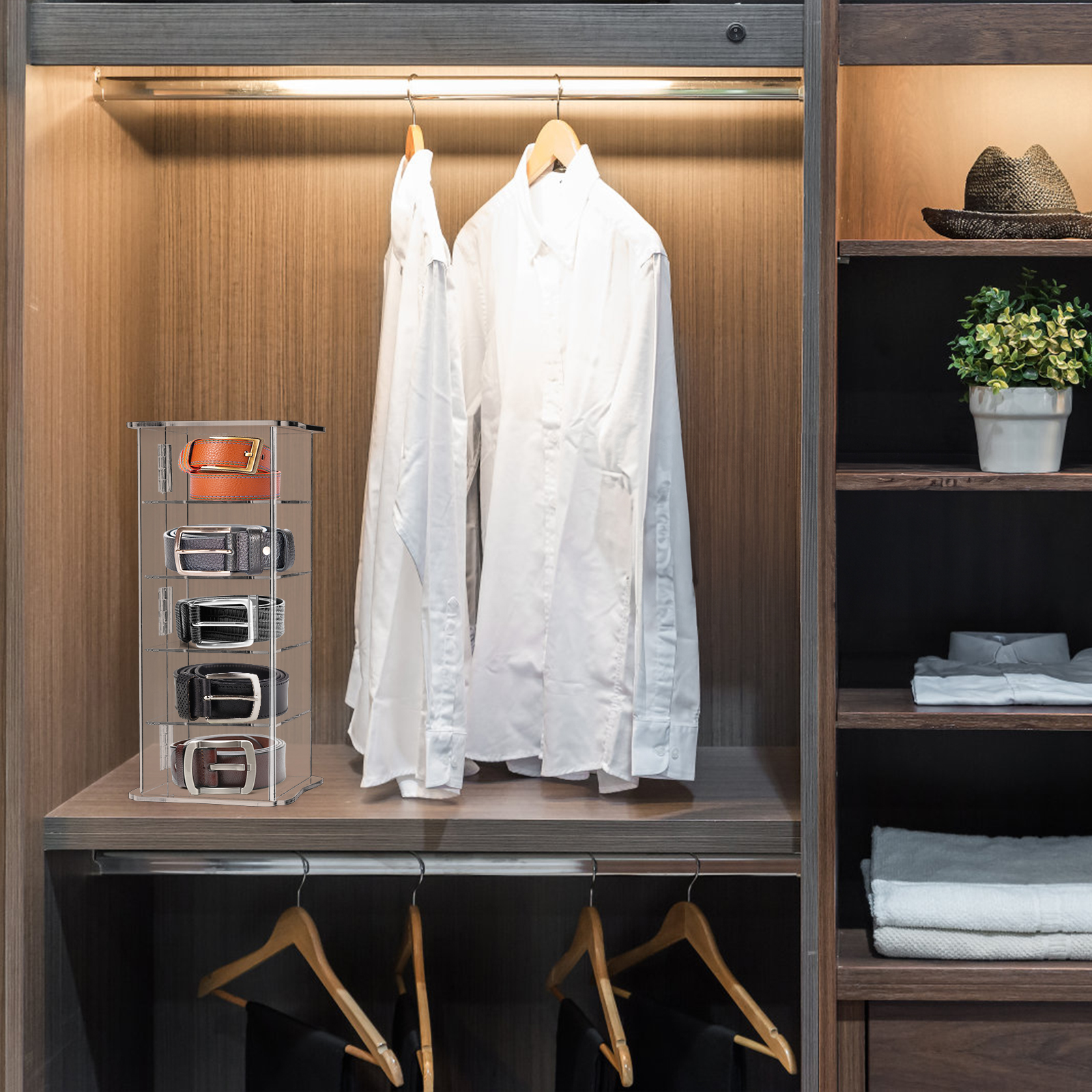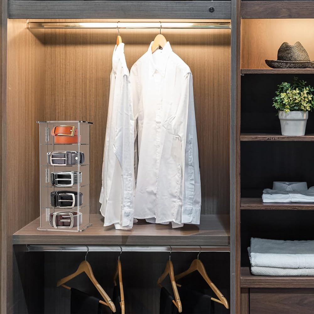 ما ستحصل عليه: منظم حزام شفاف من ZENFUN مكون من 5 طبقات للخزانة، مقاس 13.5 سم ارتفاع × 5.1 سم عرض × 5.1 سم طول، يمكن أن يناسب أبازيم الحزام حتى ارتفاع 2.5 سم. منظم الحزام للرجال والنساء يحافظ على المساحة على خزانة ملابسك ويحافظ عليها. مساحتك نظيفة ومرتبة، ومناسبة لغرفة القراءة وغرفة النوم وغرفة المعيشة والحمام وغرفة التخزين، دون أن تشغل مساحة كبيرة.