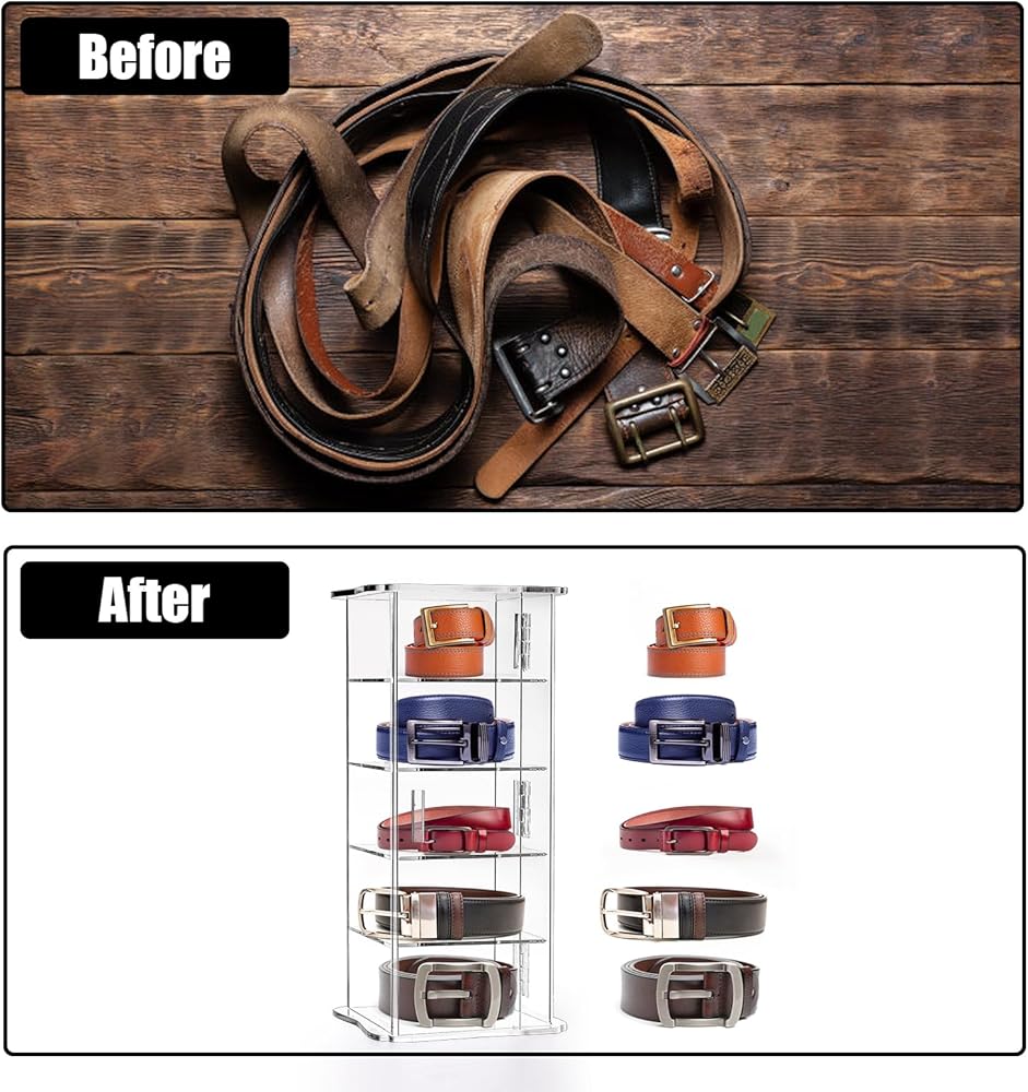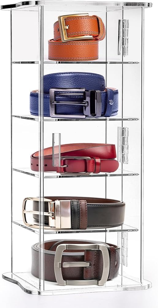 مادة فاخرة: منظم حامل الحزام هذا للفتيات مصنوع من الأكريليك الناعم السميك الذي هو أقوى من البلاستيك، قوي وموثوق، ليس من السهل كسره أو تشوه وسوف تحب لونه الجميل الشبيه بالكريستال، كما يمكن لصندوق عرض الحزام الجميل هذا تزيينه غرفتك!