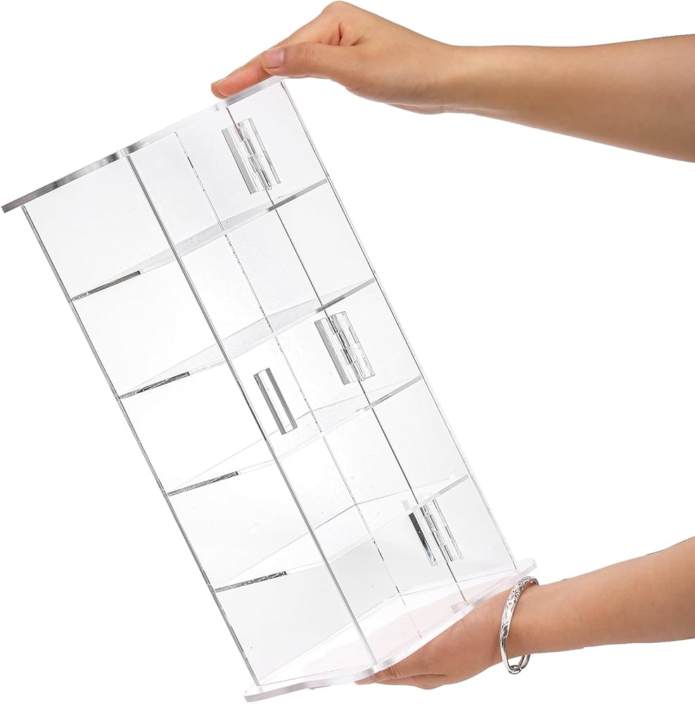 تصميم ممتاز بباب واحد من قطعة واحدة: تتميز علبة العرض المكونة من 5 أقسام بتصميم من قطعة واحدة وباب واحد، ومقاومة للغبار والماء، ولن تفسد أغراضك الداخلية بالماء أو تغطيتها بالغبار! من السهل أيضًا حملها وحملها!