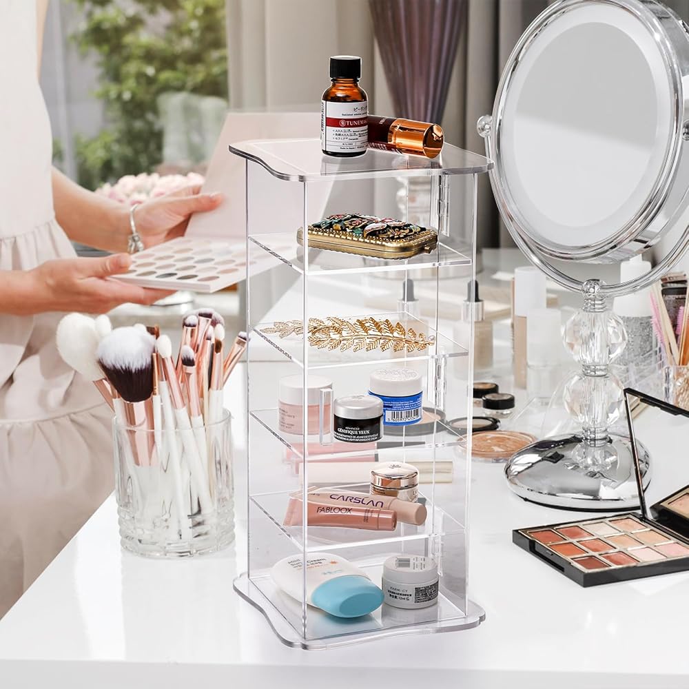حافظة شفافة لسهولة الالتقاط: يمكن لمنظم الزينة المربع المزود بغطاء تنظيم أغراضك عن طريق تخزينها في مقصورات شفافة يسهل رؤيتها واختيارها واختيارها، حتى تتمكن من العثور على العناصر التي ترغب فيها بدقة شديدة دون أي جهد.