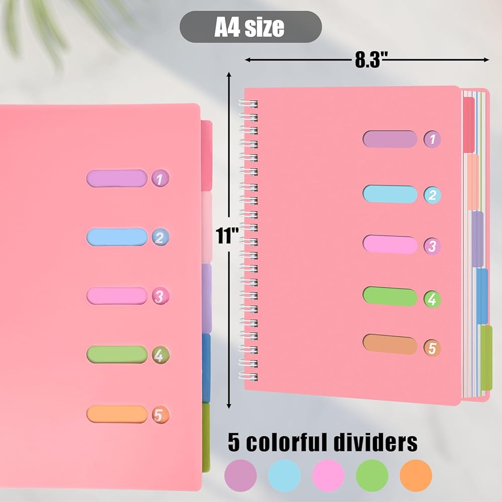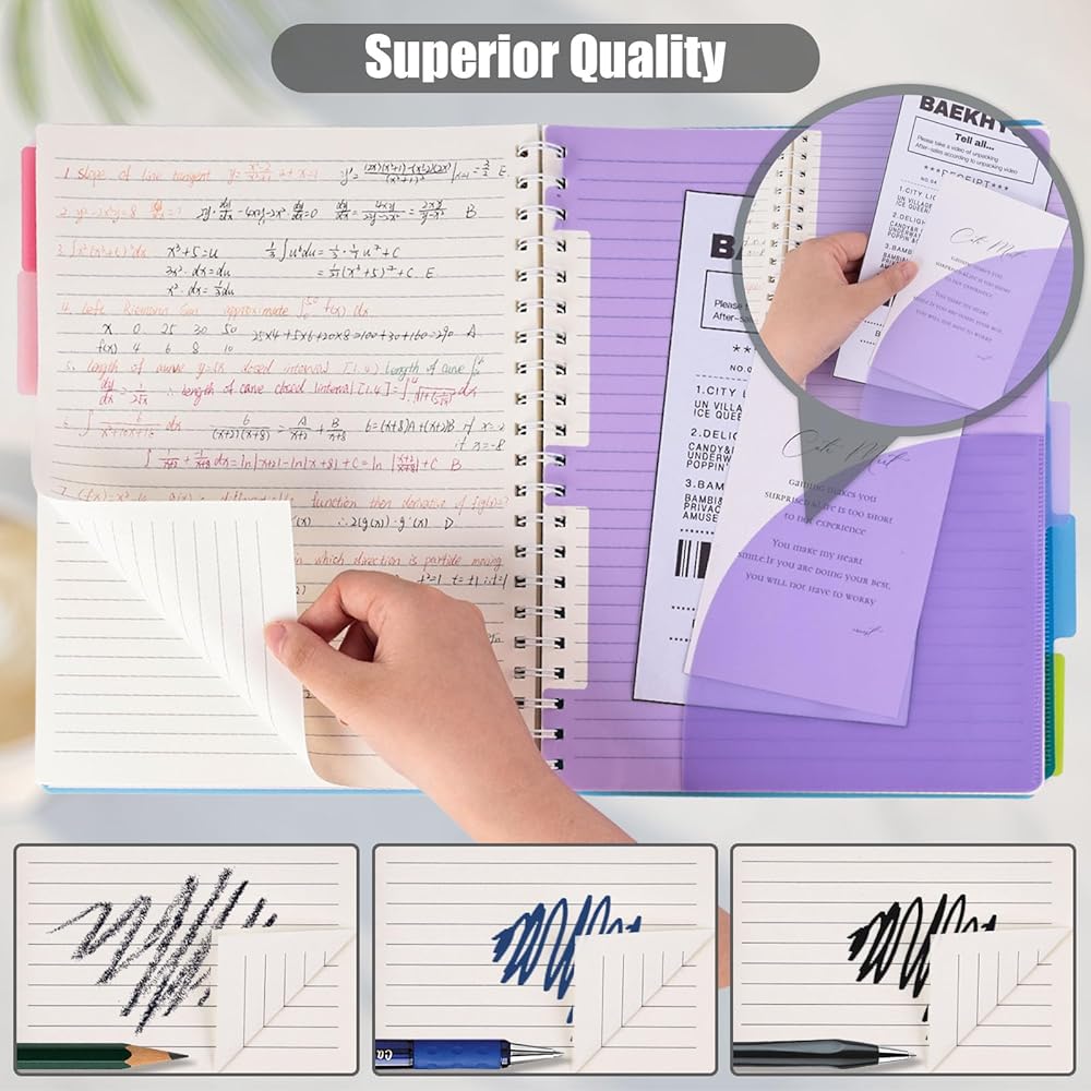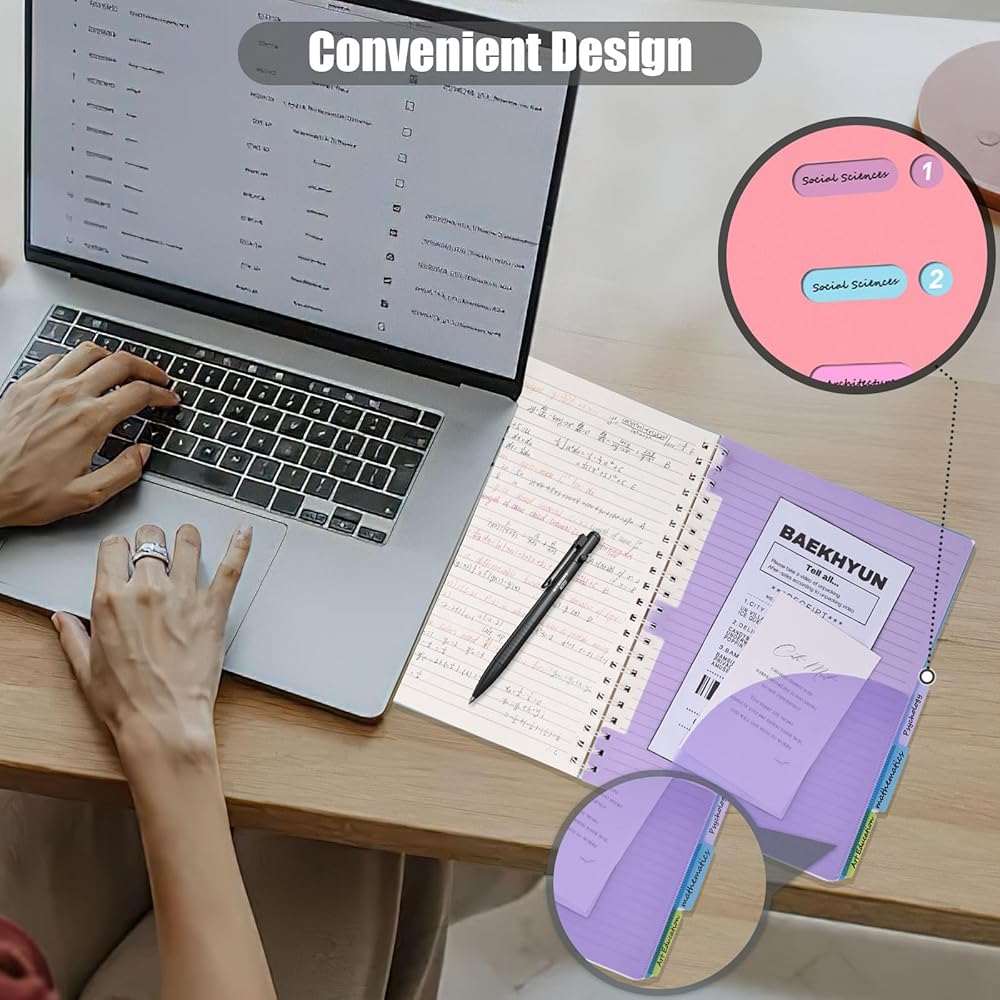 تصميم مريح - يتميز هذا الكمبيوتر المحمول الحلزوني بـ 5 صفحات مقسمة بلاستيكية ملونة، مما يعزز كفاءة تدوين الملاحظات ويجعل العمل والدراسة أكثر ملاءمة. إذا كنت تهدف إلى الحفاظ على ملاحظاتك منظمة، خاصة للمشروعات المتعددة، فإن دفتر الملاحظات المكون من 5 موضوعات هو الخيار المثالي.