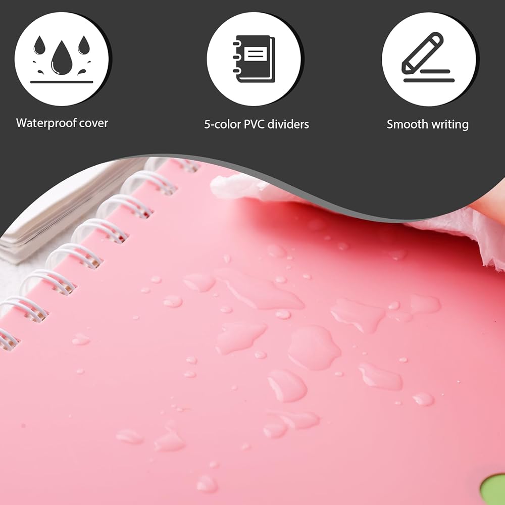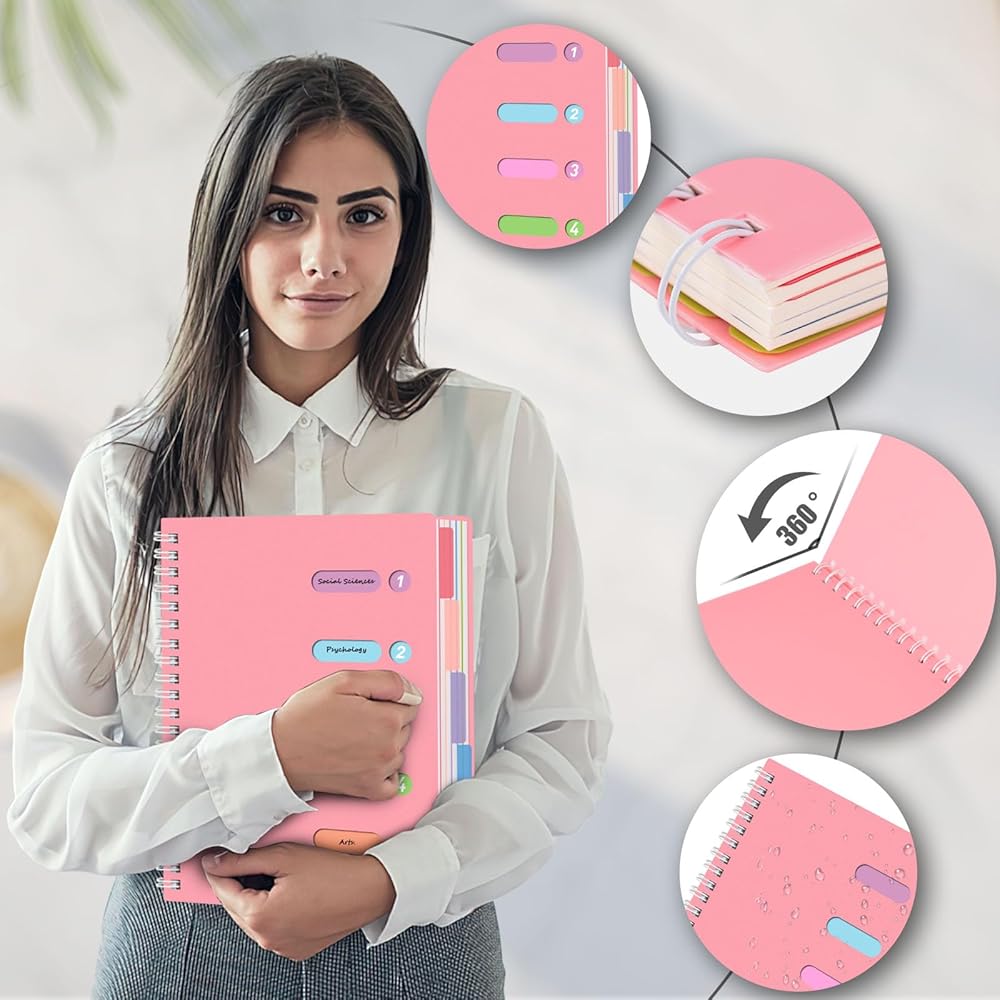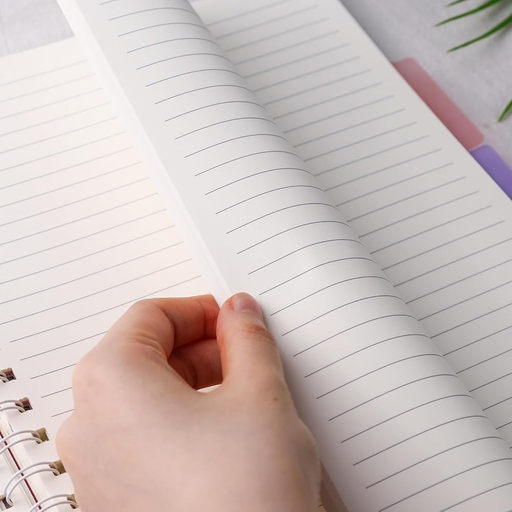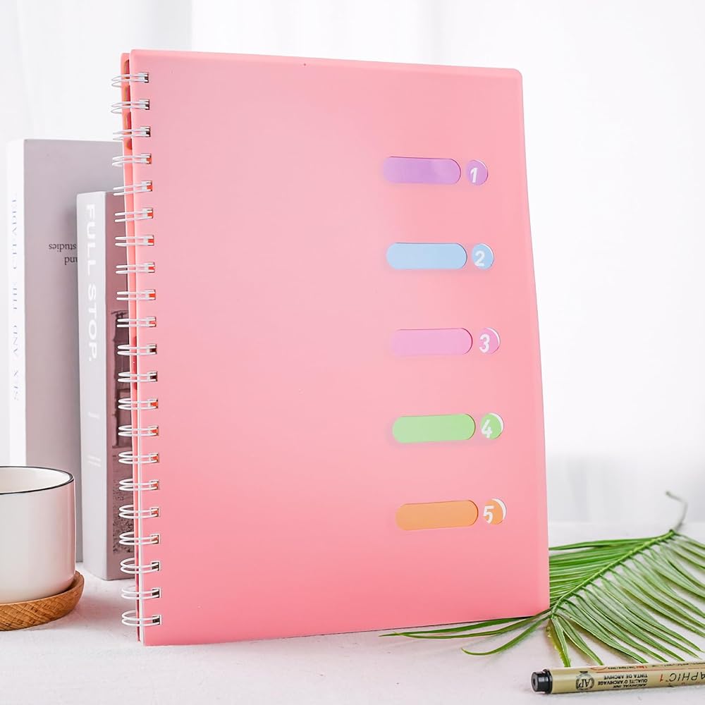 تصميم مريح - يتميز هذا الكمبيوتر المحمول الحلزوني بـ 5 صفحات مقسمة بلاستيكية ملونة، مما يعزز كفاءة تدوين الملاحظات ويجعل العمل والدراسة أكثر ملاءمة. إذا كنت تهدف إلى الحفاظ على ملاحظاتك منظمة، خاصة للمشروعات المتعددة، فإن دفتر الملاحظات المكون من 5 موضوعات هو الخيار المثالي.
