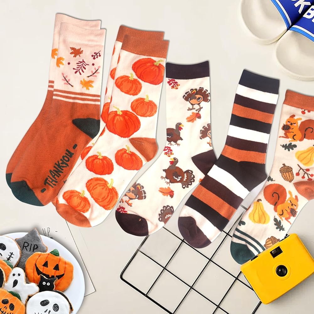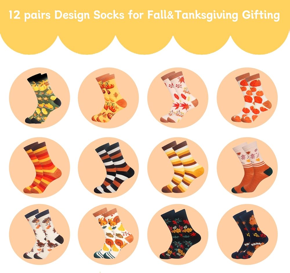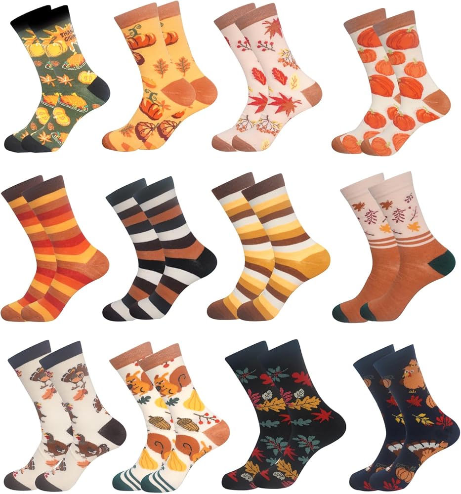 12 PAIRS FALL SOCKS SET: You will receive 12 pairs of socks in different cute pattern. This different pattern on the socks adding a autumn color to your outfit.