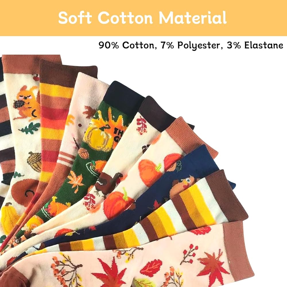 SOFT AND COMFORTABLE: Cute fall Socks are made with high-quality cotton and have stretchy elastic bands around the ankle so they'll stay up without being too tight. Soft cotton material that feels like a cloud on your feet.