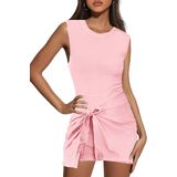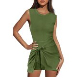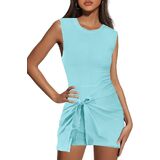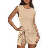 Nirovien Womens Athletic Romper Dress Tie Waist Sleeveless Jumpsuits Open Back Sarong Romper Workout Mini Dress