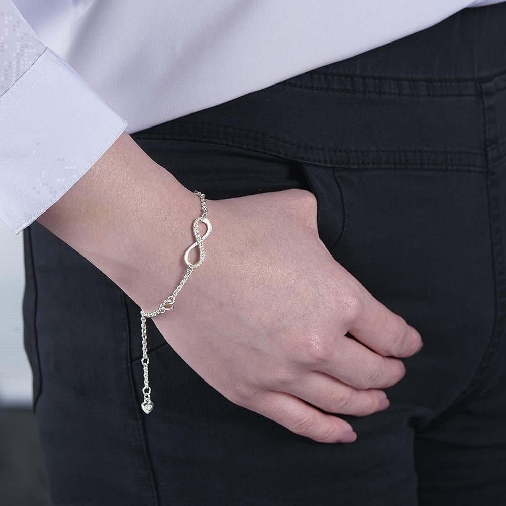 • 💗 QUALITY WORKMANSHIP 💗 The infinity pendant necklace and bracelet is finely crafted with authentic 925 sterling silver, encrusted with sparkling AAA cubic zirconia for dazzling shines. The necklaces for women infinity suspended from adjustable 16”-18” silver chain, while infinity charm heart bracelet comes in 6” – 7.5”.