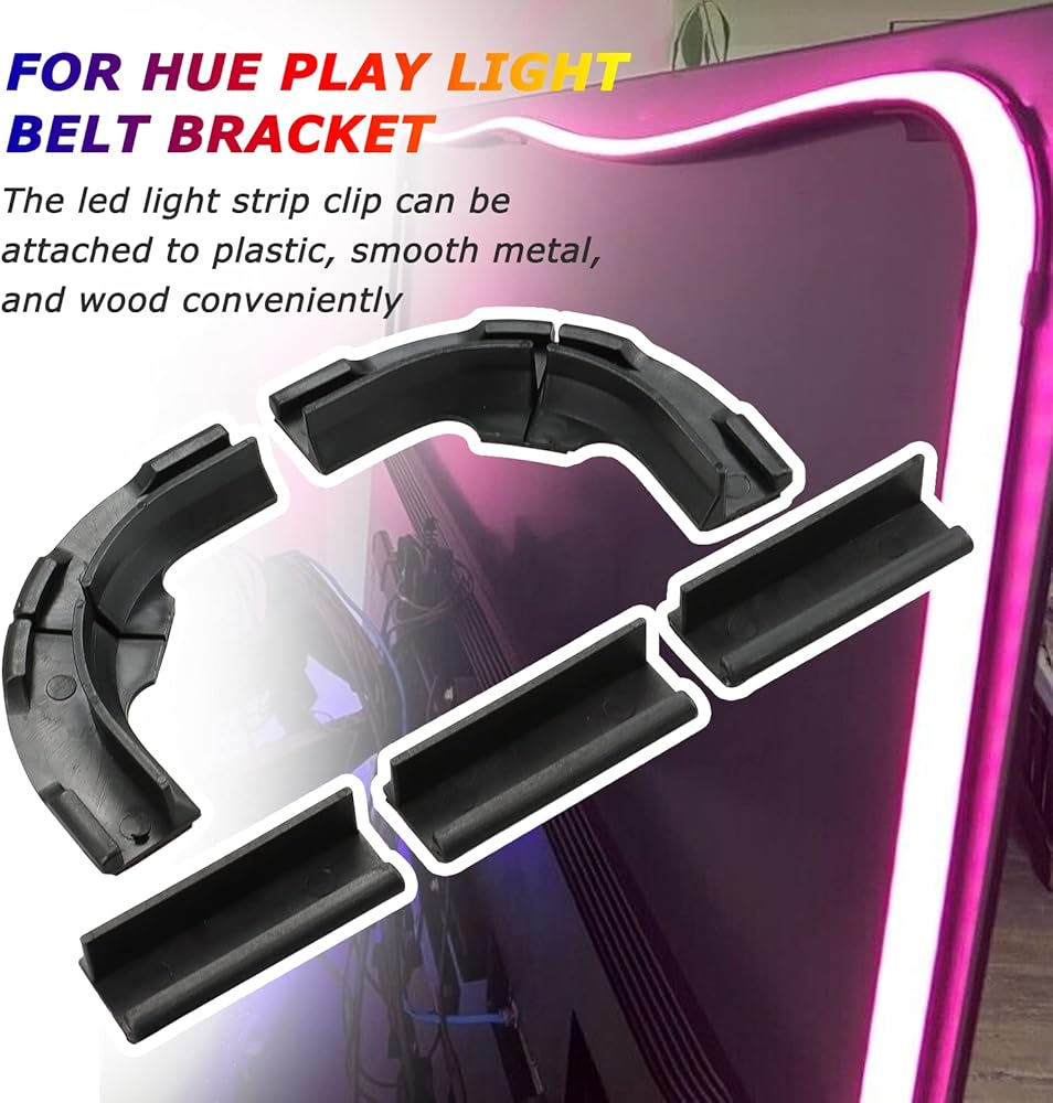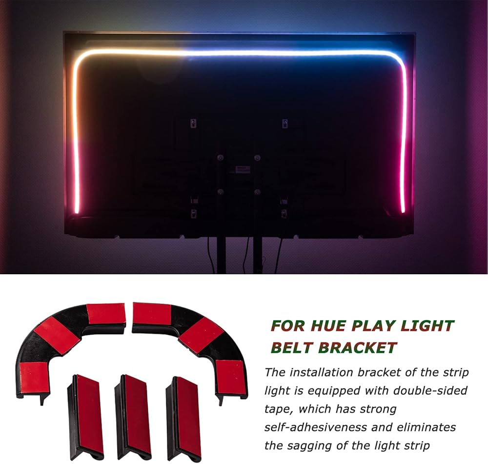 - [الإعداد] - يناسب حامل شريط الإضاءة LED هذا شريط الإضاءة المتدرج، ويعمل لكل من الجزء الخلفي المسطح وغير المسطح من التلفزيون.