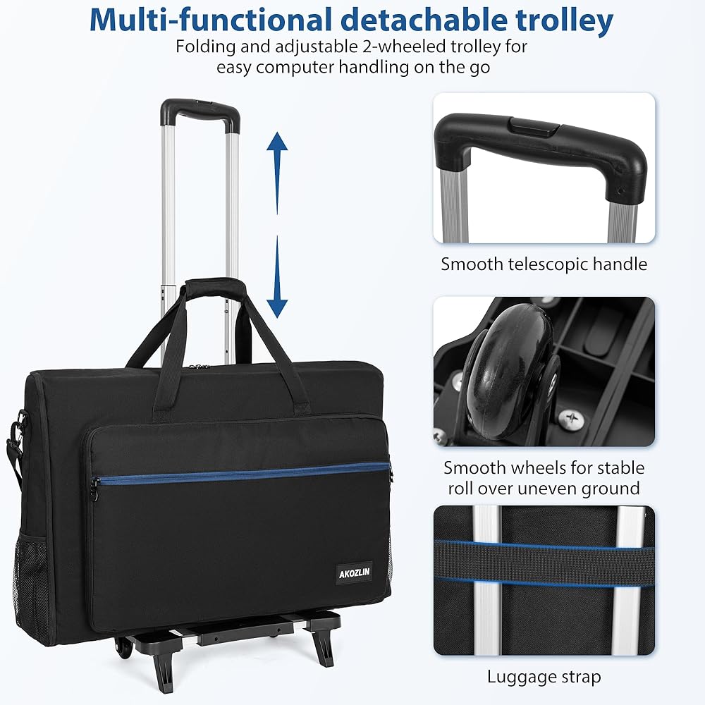 【Multifunctional Detachable Trolley】The folding and adjustable Hand Truck with 2 wheels is convenient to transport computer on trips.Safe and secure,sturdy hard panel reinforcement in front flap for extra screen protection.Perfect for tailgates,tradeshows,conventions,live events,DJ/Karaoke,PC gaming etc