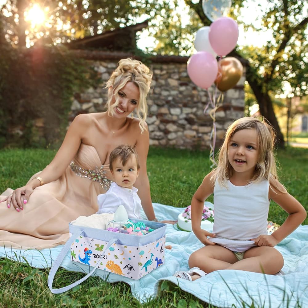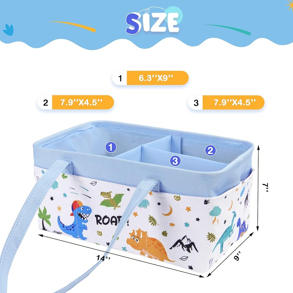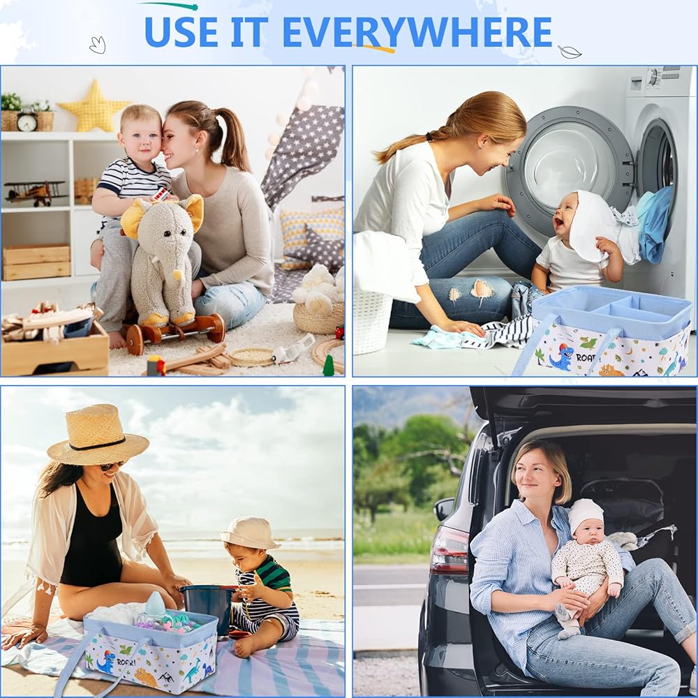 علبة حفاضات الديناصورات من WERNNSAI - منظم حضانة قابل للطي للأولاد والرضع وهدايا استحمام الطفل وسلة تخزين زرقاء كبيرة لتغيير طاولة السيارة والسفر وغرفة المعيشة وأساسيات حديثي الولادة يجب أن تحتوي على نقاط