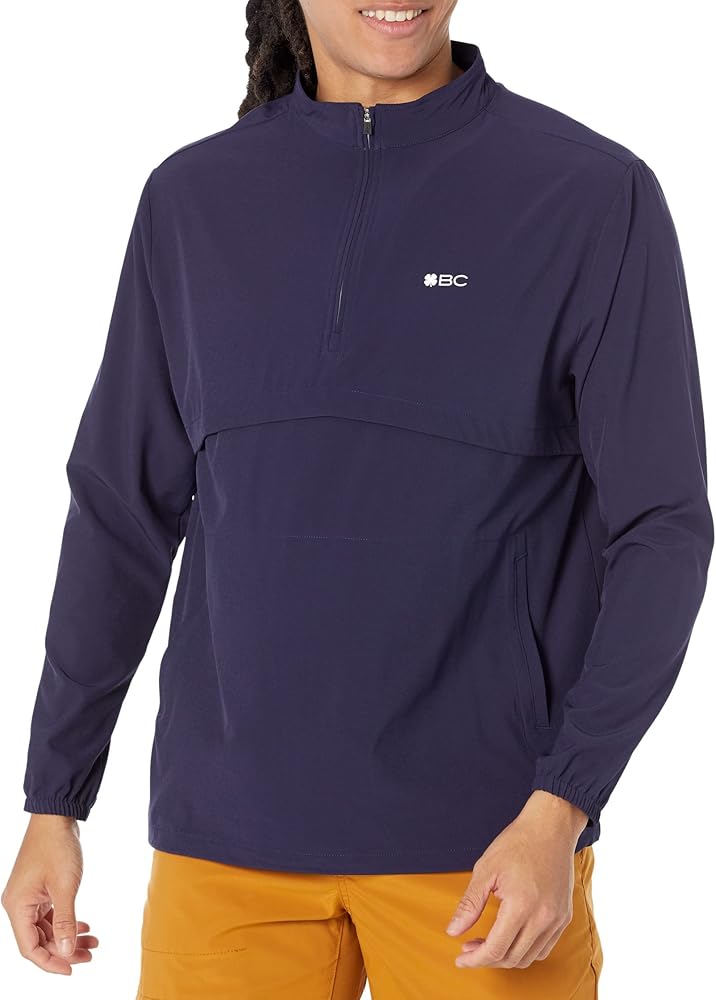 Add a warm and cozy layer to your ensemble with the Black Clover Quarter Jack Outerwear jacket. Pullover style. Mock neckline and long sleeves. Quarter-zippered closure. Branding on the left chest and at the nape. Front hand pockets. Elasticized cuffs and hem. 86% polyester, 14% spandex. Machine washable.
