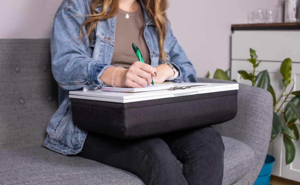 العمل من المنزل: المكتب المحمول المثالي حتى تتمكن من إنجاز العمل وأنت جالس في أي مكان في منزلك. رائعة للعمل من سريرك أو أريكتك أو كرسيك أو أثاث الفناء. تتيح لك وسادة الإسفنج الذكي الجلوس بشكل مريح لفترات طويلة حتى تتمكن من إنجاز العمل
