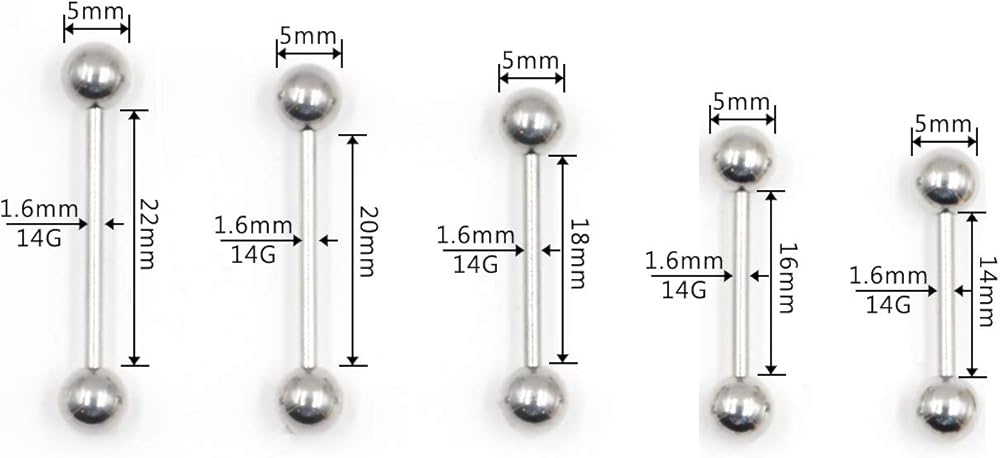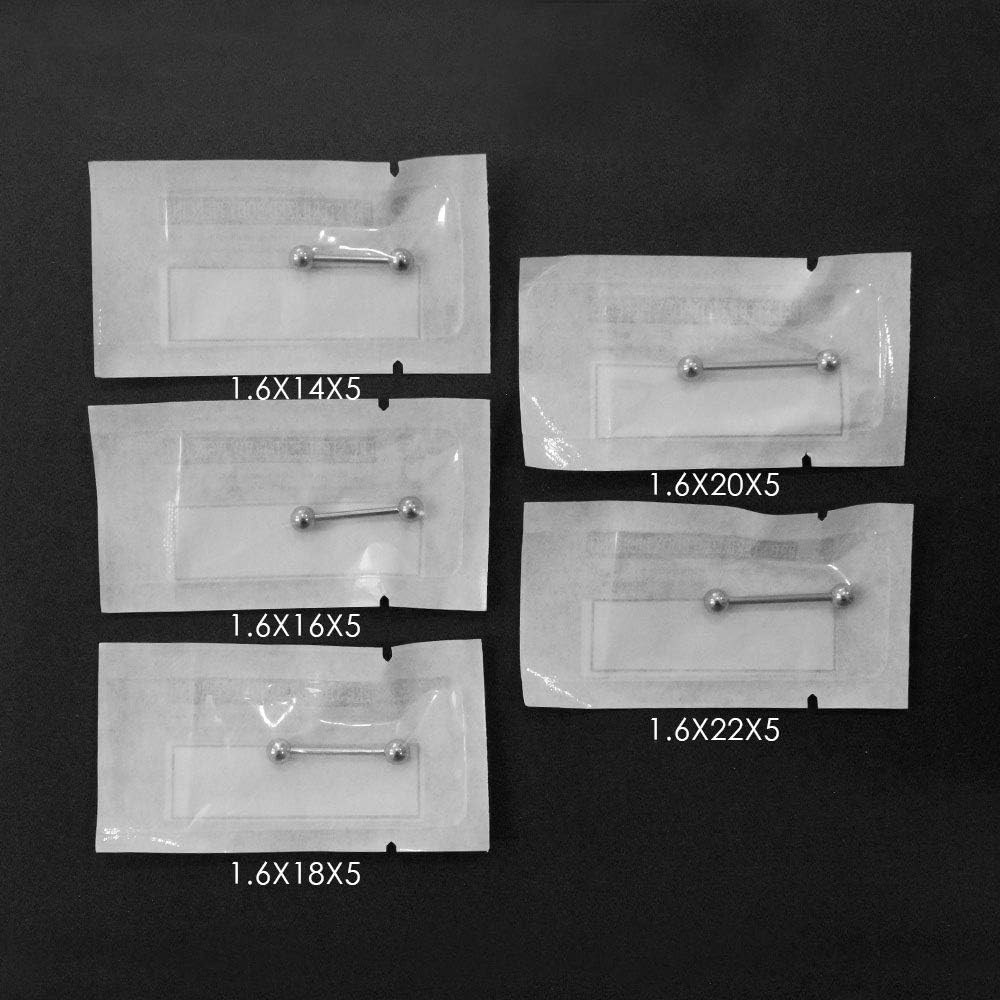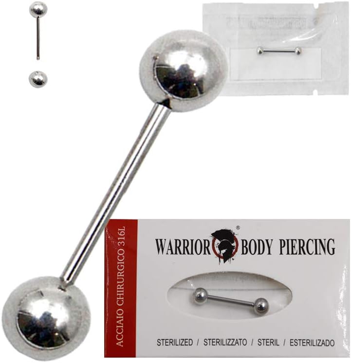 ثقب الأذن من الفولاذ الجراحي المعقم 316L من WARRIOR 14G(1.6 مم) مع كرتين 5 مم طول 14 مم PLS-001