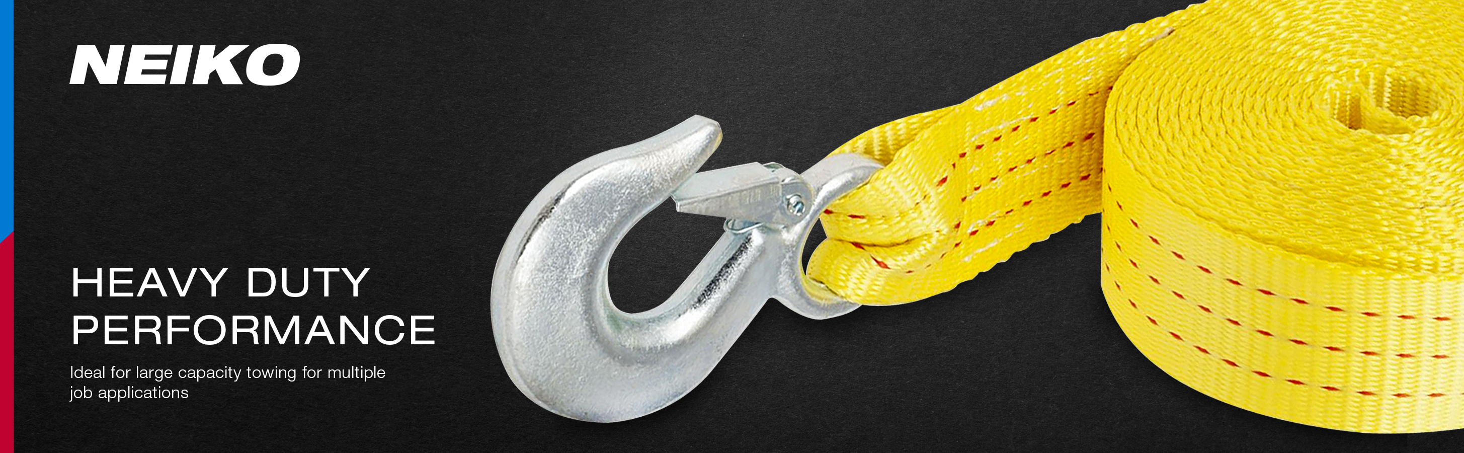 To use the strap, simply attach one hook to the underside of the vehicle that needs towing, and attach the other hook to the towing truck. In addition to towing vehicles, this strong pull strap can also be used for other jobs, such as pulling out tree roots or stumps. Use this towing strap as an emergency vehicle-towing strap or for personal projects. Whether you need a tow strap for regular use or a new addition to your emergency roadside gear, NEIKO has your back with our durable, dependable, and strong tools.