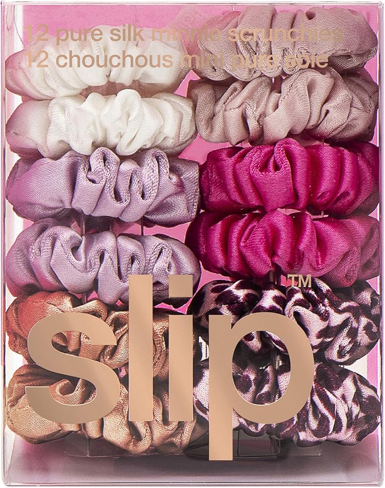 Slip Silk Minnie Scrunchies - French Rose - 100٪ 22 Momme Mulberry Silk مجموعة صديقة للشعر (12 Scrunchies للنساء)