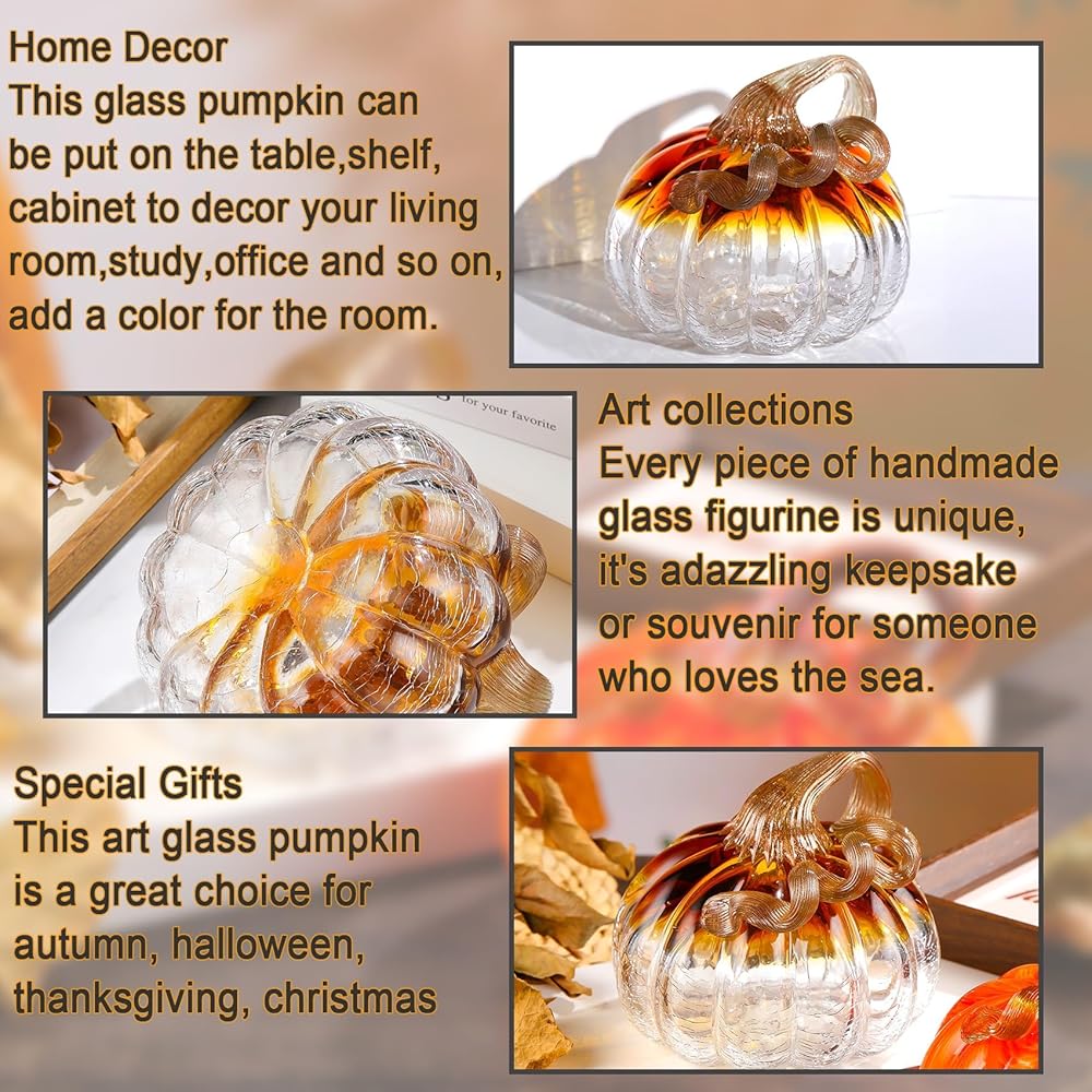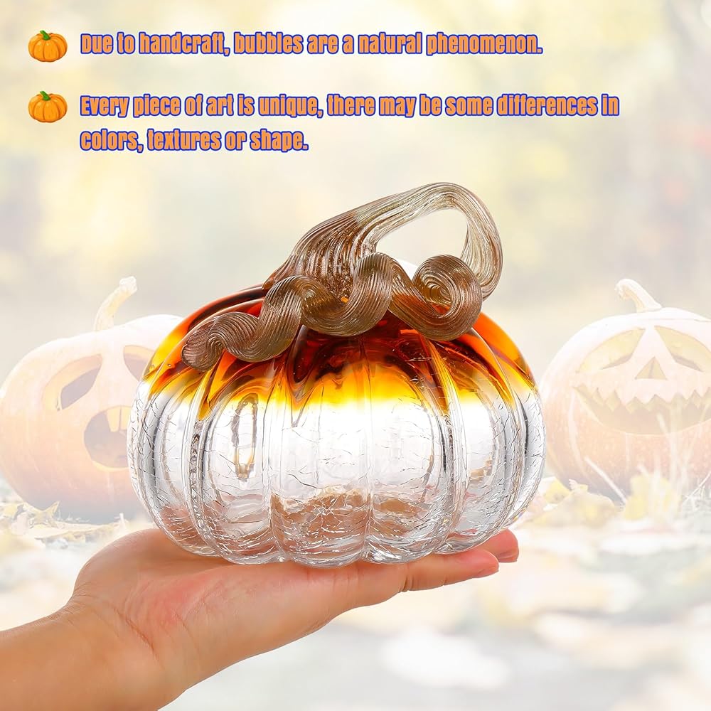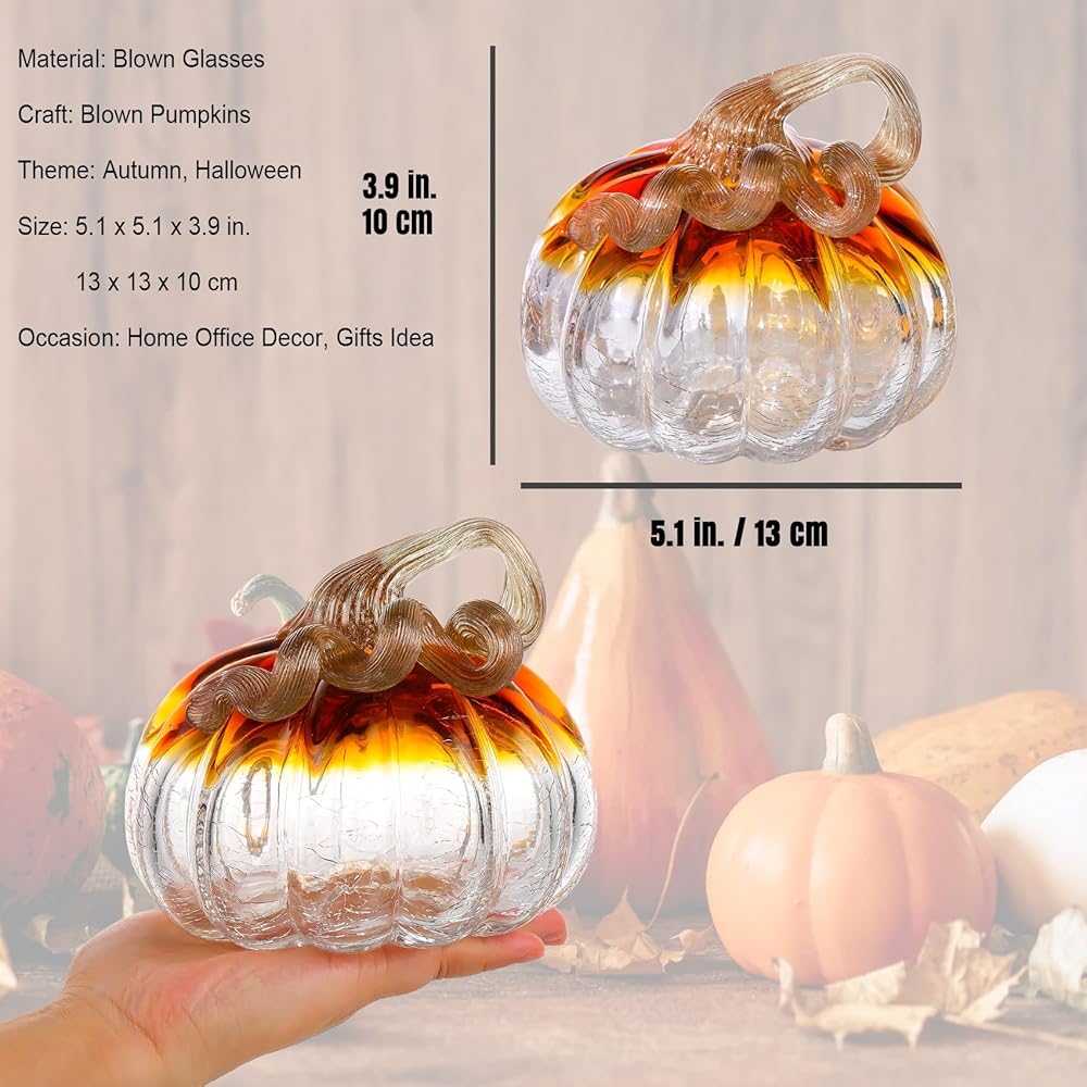 • Art Pumpkin Design: The crystal pumpkin is based on realistic pumpkins, lifelike and vivid. Each pumpkin has vivid stems cure and emerge from the top of the pumpkins. It features high end, adorable and matching with most indoor home decoration