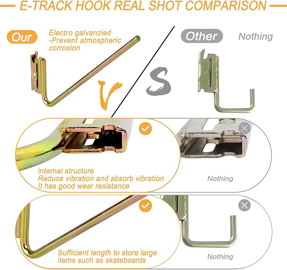 ★Premium Materials: To make sure they can withstand pressure and weight, we have made sure that our e track hooks are made of durable and reliable materials. The accessories hook is made entirely of carbon steel and features zinc coating for extra durability and sturdiness