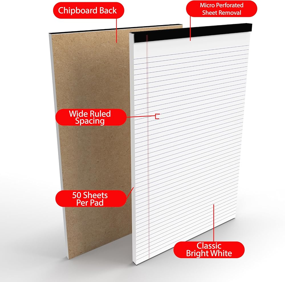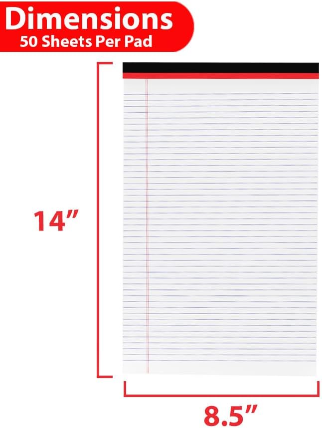 • PERFECT SIZE NOTE PADS 8.5 X 11 - Legal wide rule notepad are the perfect size. Whether it's for your job or just making grocery lists these will get the job done.
