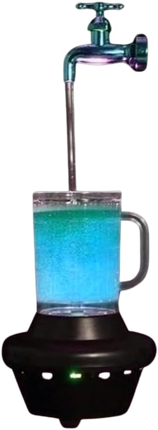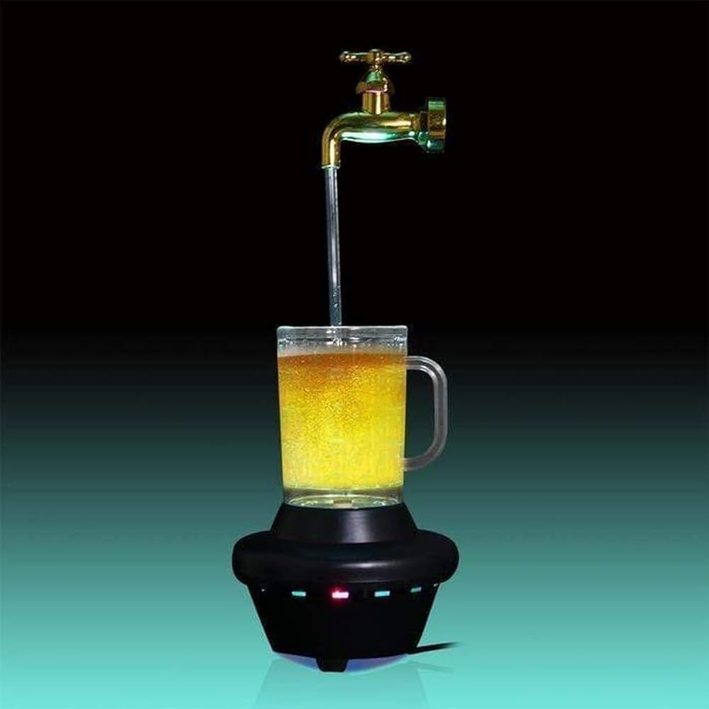 Magic LED Faucet Beer Mug - Color Changing Tabletop FountainIntroducing the Magic LED Faucet Beer Mug, a stunningly unique tabletop fountain that adds a touch of magic to any room. This eye-catching piece features a faucet seemingly suspended in mid-air, pouring liquid into a beer mug below without any visible support.
