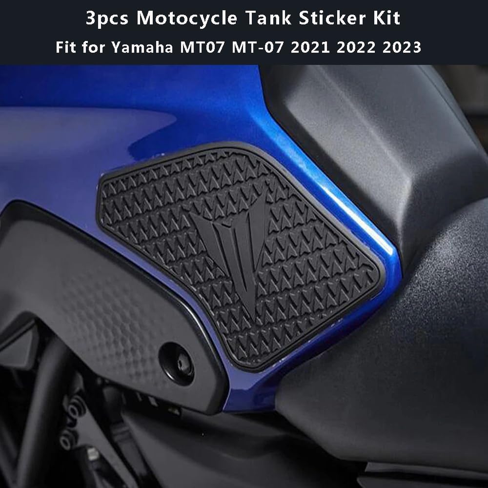 مجموعة ملصقات الخزان MT07 2021-2023 - 3 قطع وسادة حماية جانبية لخزان الوقود لـ Y.amaha MT 07 MT07 MT-07 2021 2022 2023 - أسود