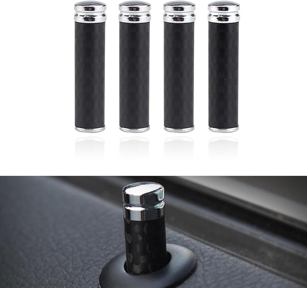 Crynod 4 PCS Car Door Lock Modification Knobs, Carbon Fiber Metal Vehicle Door Pull Pins Decor, Universal Durable Waterproof Auto Door Interior Bolt Accessories for Cars SUVs Trucks Vans (Black)