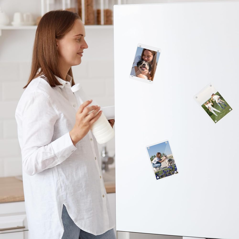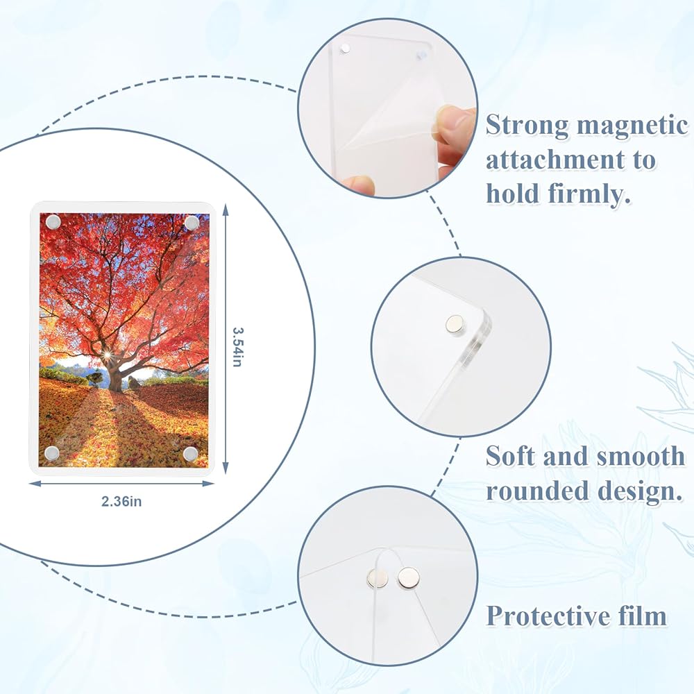 إطارات صور أكريليك، إطار صور مغناطيسي صغير مقاس 2.36 × 3.54 بوصة، إطار صورة مغناطيسي للثلاجة مزدوج الجوانب، إطار مغناطيسي شفاف، حزمة من 6 قطع مع 20 ورقة بطانة لإطار الصورة