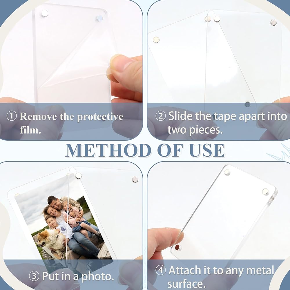 【مرفق ثابت】تم تجهيز إطار الصورة المغناطيسي الصغير الخاص بنا بأربعة مغناطيسات عالية الأداء موجودة في زوايا الإطار لضمان تثبيت الصورة أو الورق بشكل آمن في المنتصف مع ضمان إمكانية تثبيت الإطار بشكل آمن بالثلاجة. الباب أو خزانة الملفات أو أي سطح معدني، وأنها لن تسقط من مكانها حتى لو تم فتح الباب أو إغلاقه عن طريق هزة.