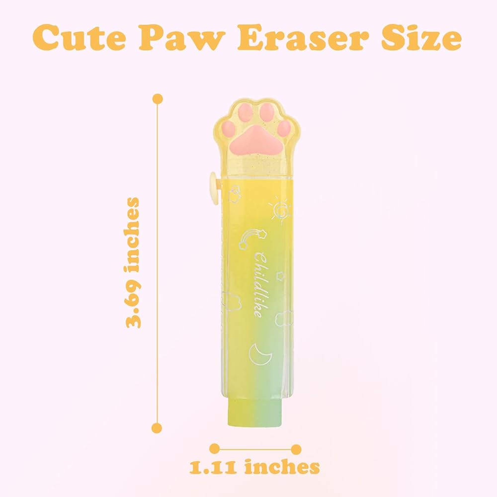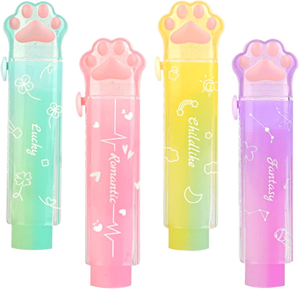 Cat Paw Erasers,4 Pcs Rainbow Color Cute Erasers Retractable Kawaii Eraser for Kids,Rubber Push-Pull Eraser for Students Writing,Drawing Aesthetic Erasers for School Stationery Supplies