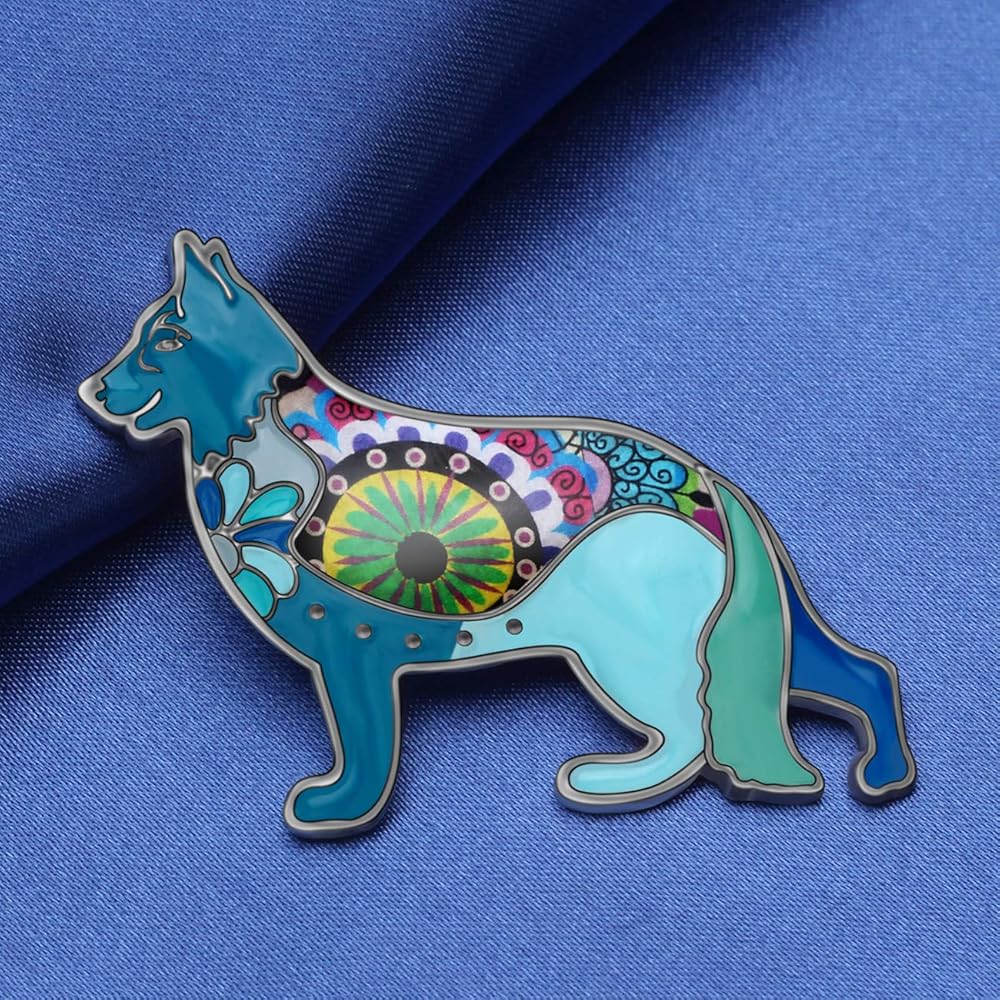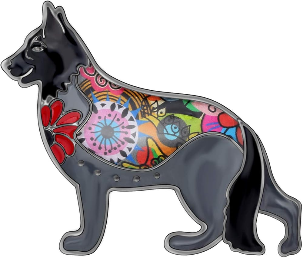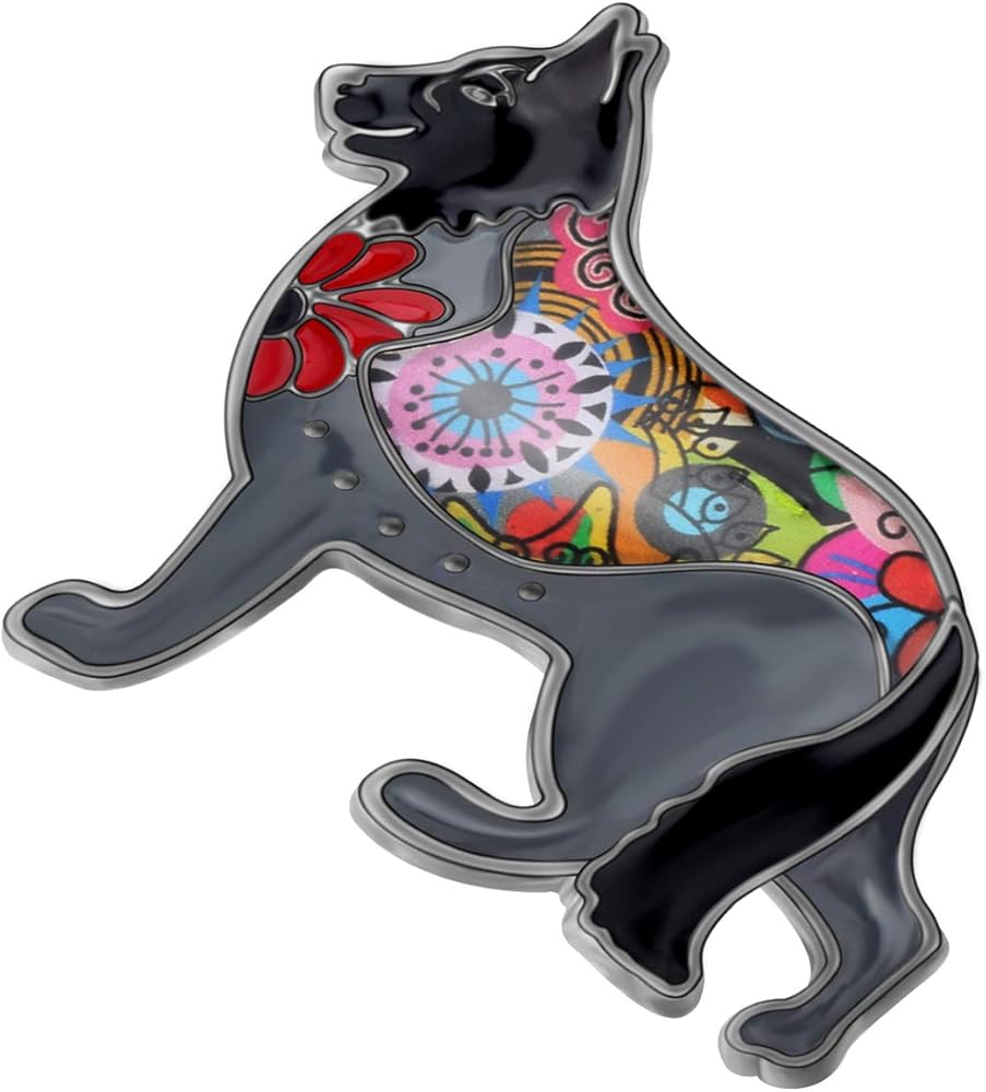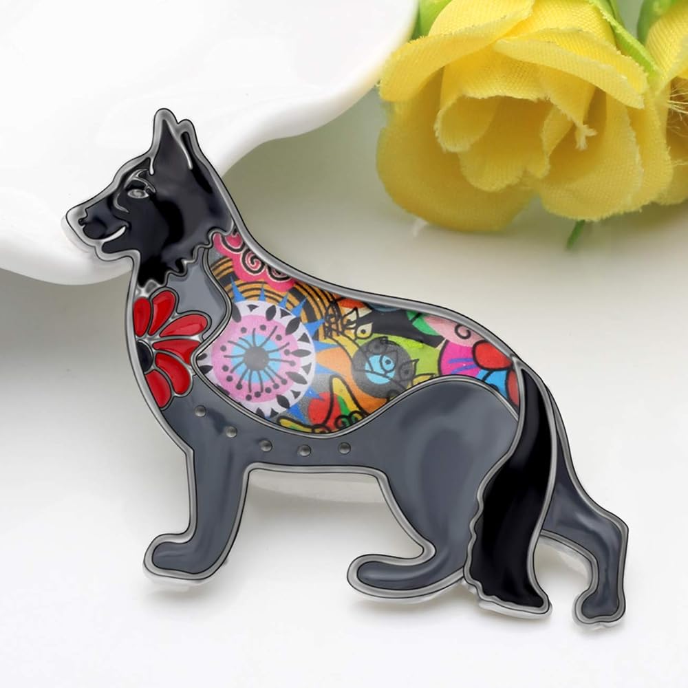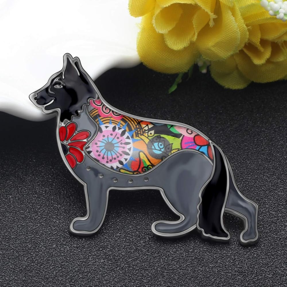 بروش كلب الراعي الألماني مصنوع من سبائك المينا ودبابيس على شكل جرو وحيوان أليف ووشاح وإكسسوارات مجوهرات هدايا للنساء والسيدات (أسود)