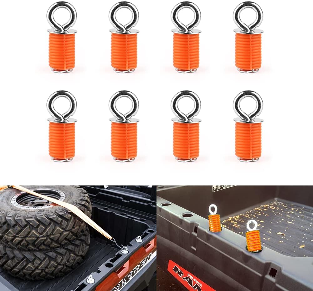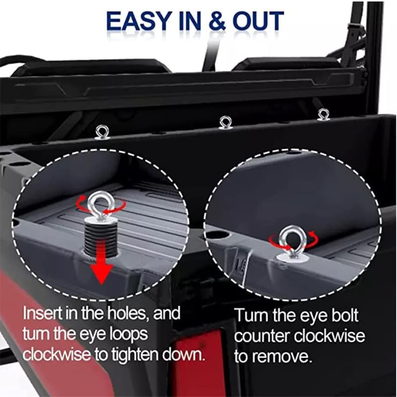 【Easy Installation】Simply insert, turn and tighten. Easy to install but this rzr bed tie downs fit tightly in the holes around the bed. Dish soap can be used to help with installation. Package includes installation notes.