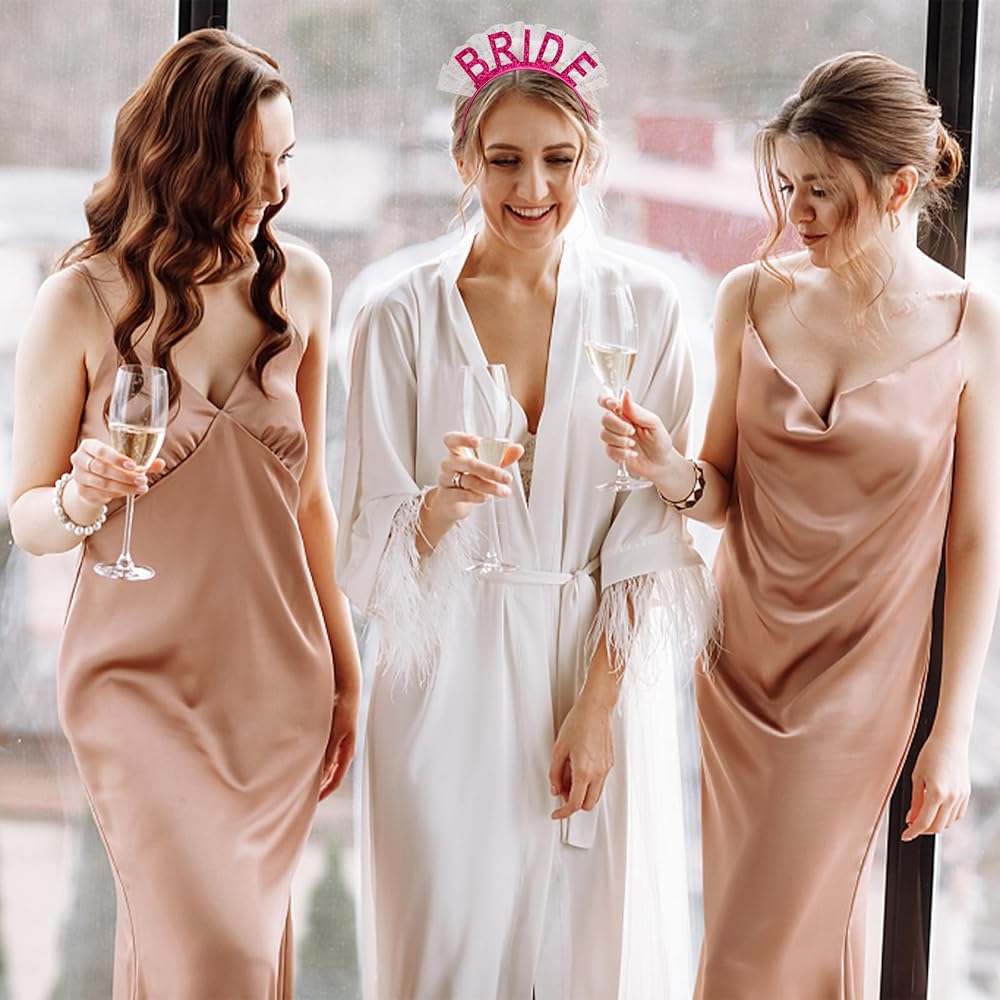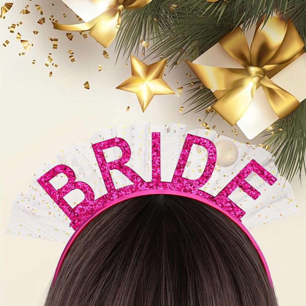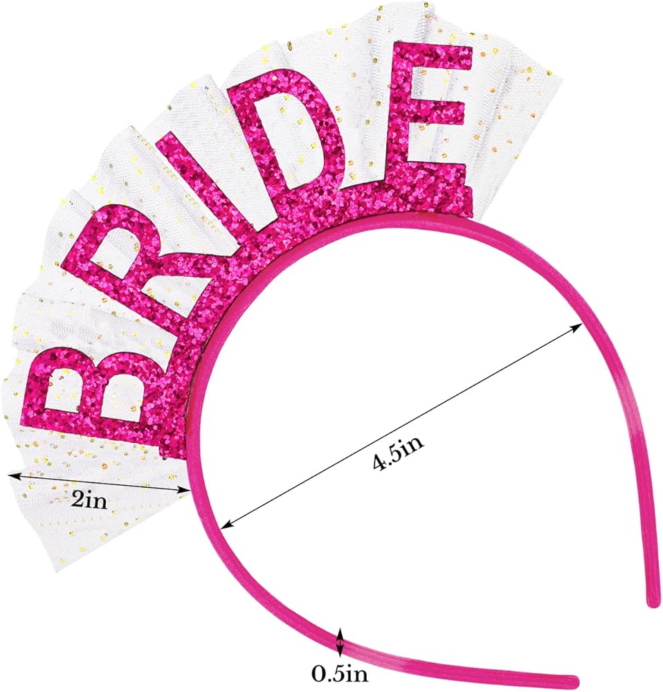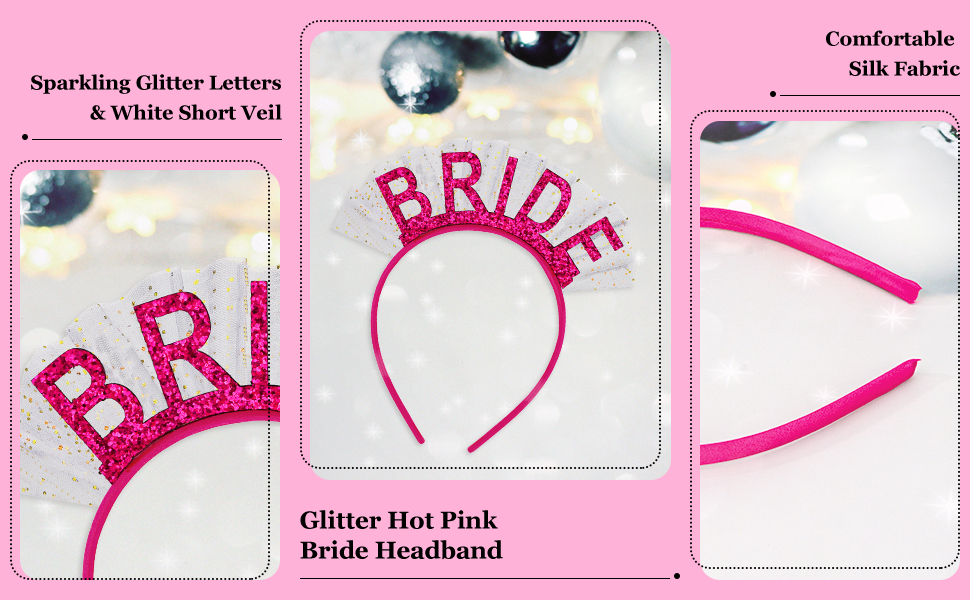 • خامة عالية الجودة: عصابة الرأس اللامعة الوردية الساخنة مصنوعة من لباد عالي الجودة، وشاح قصير وبوليستر، خفيفة الوزن ومتينة، حرف مع "BRIDE" في الأعلى، ويوجد وشاح قصير مع ترتر ذهبي مدمج خلف الحروف، مما يجعل عصابة الرأس أكثر لطفاً، يمكن ارتداؤه بسهولة مع فستانك المفضل