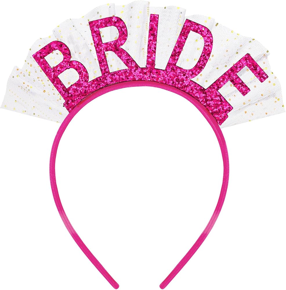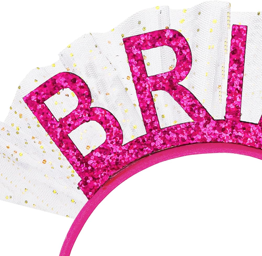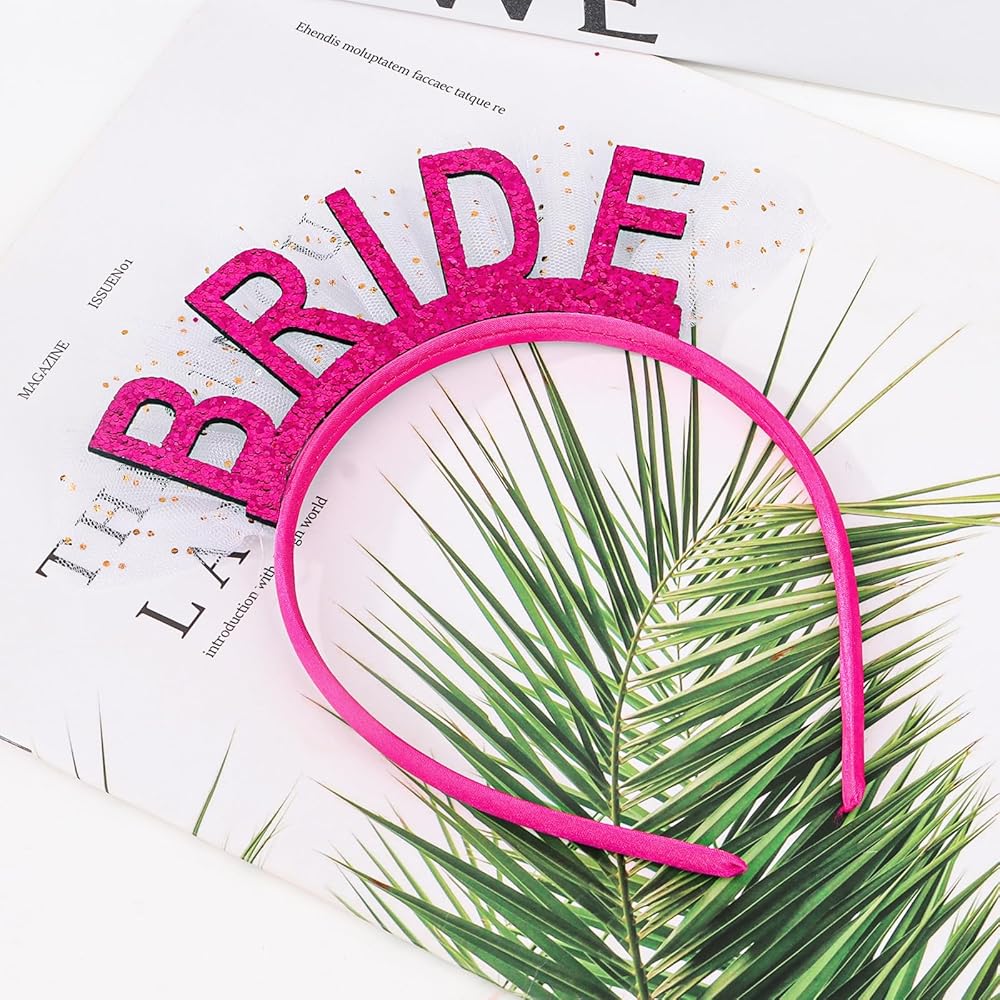 عصابة رأس العروس اللامعة باللون الوردي الساخن مع حجاب قصير لتزيين حفلات توديع العزوبية وعصابة رأس لحفلات الزفاف وحفلات العزوبية وحفلات الزفاف
