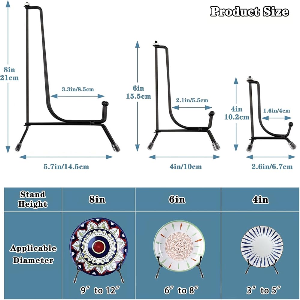 【3 مقاسات مختلفة لتلبية الاحتياجات المختلفة】: تأتي حوامل عرض اللوحة بثلاثة مقاسات مختلفة، مما يسمح لك بعرض العناصر ذات الأحجام المختلفة دون عناء. (كل حجم يحتوي على قطعتين، إجمالي 6 عبوات)؛ حامل عرض لوحة مقاس 4 بوصة يناسب منتجًا يبلغ ارتفاعه / قطره 3 بوصات ~ 5 بوصات، وحامل حامل لوحة مقاس 6 بوصات يناسب منتجًا يبلغ ارتفاعه / قطره 6 بوصات ~ 8 بوصات. حامل لوحة مقاس 8 بوصة يناسب منتجًا يبلغ ارتفاعه / قطره 9 بوصة ~ 12 بوصة.