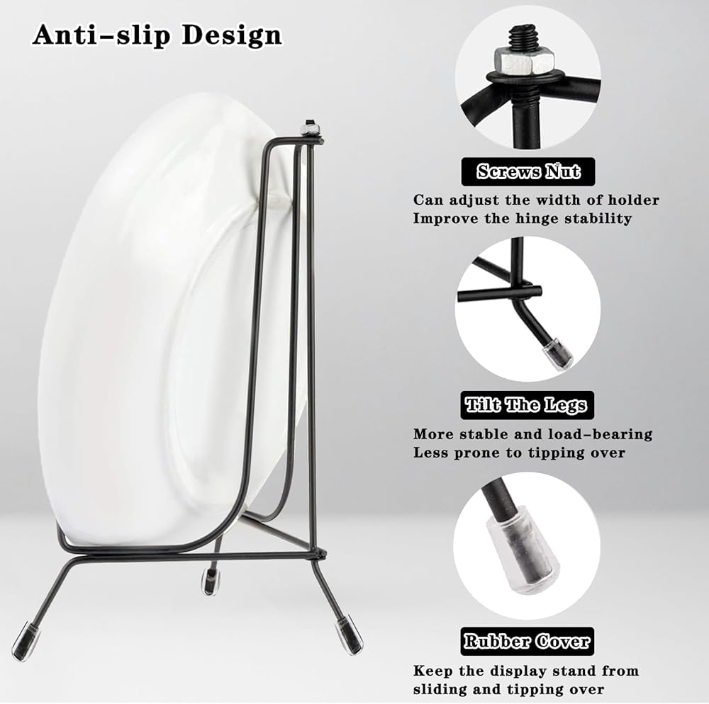 【جودة عالية】: حوامل الأطباق هذه مصنوعة من حديد عالي الجودة ولها لمسة نهائية مطلية بمسحوق أسود غير لامع، قوية وتدوم طويلاً؛ تصميم الحديد الأسود ليس قويًا فحسب، بل يضيف أيضًا لمسة أنيقة إلى كل ما يحمله ولمسة من الرقي إلى الحامل، مما يكمل مجموعة متنوعة من أنماط الديكور، ويرفع من طريقة تزيين وعرض العناصر في منزلك.