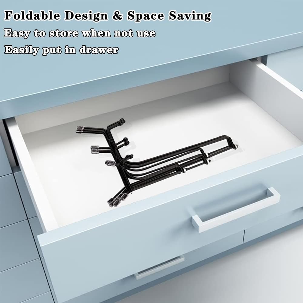 【تصميم قابل للطي وموفر للمساحة】: يمكن طي حوامل حامل العرض هذه وتدويرها إلى 90 درجة لتصبح مسطحة لسهولة الحمل والتخزين المريح لتشغل مساحة أقل عند عدم الاستخدام، مما يوفر المساحة ويسمح بالنقل بسهولة؛ كهيكل مثلث مستقر، يمكنه حمل العديد من العناصر دون أن يسقط.