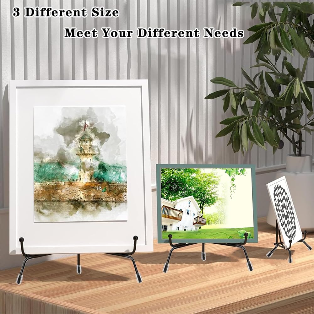 6 عبوات من 3 حوامل لوحة مضادة للانزلاق للعرض، حامل عرض حامل لوحة 4 6 8 بوصة، حامل إطار صورة معدني أسود مع تصميم قابل للطي للطبق والطبق والكتاب والصور وفن الطاولة