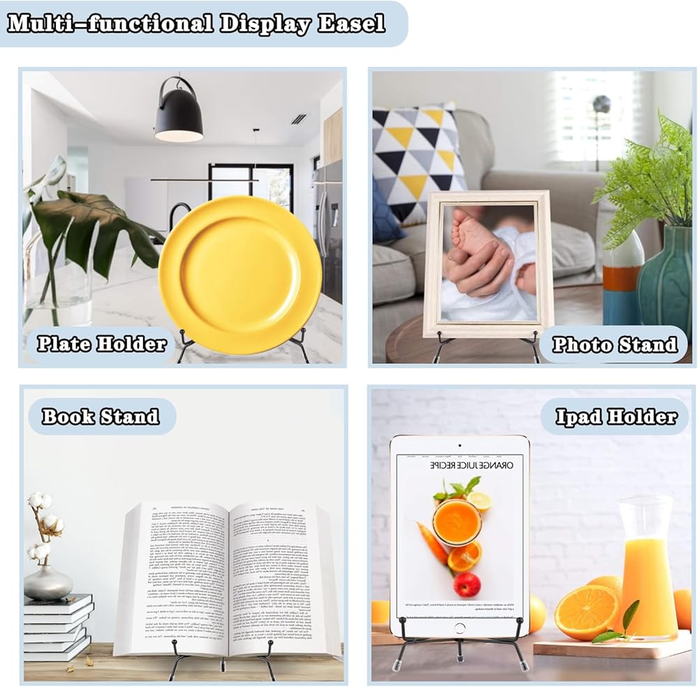 【استخدام واسع】: يمكنك استخدام حوامل العرض هذه كحامل كتب، وحامل صور، وحامل كتب الطبخ، وحامل الصور، والطبق، وألواح التقطيع، ومقتنيات الأعمال الفنية، والحرف اليدوية، والسجلات، ولافتات سطح الطاولة وما إلى ذلك؛ يمكن استخدام حوامل الأطباق هذه على نطاق واسع في المطبخ، والمنزل، وغرفة المعيشة، وغرفة النوم، وغرفة الدراسة، والمكتب، والمطاعم، والبار، والمقهى وما إلى ذلك.