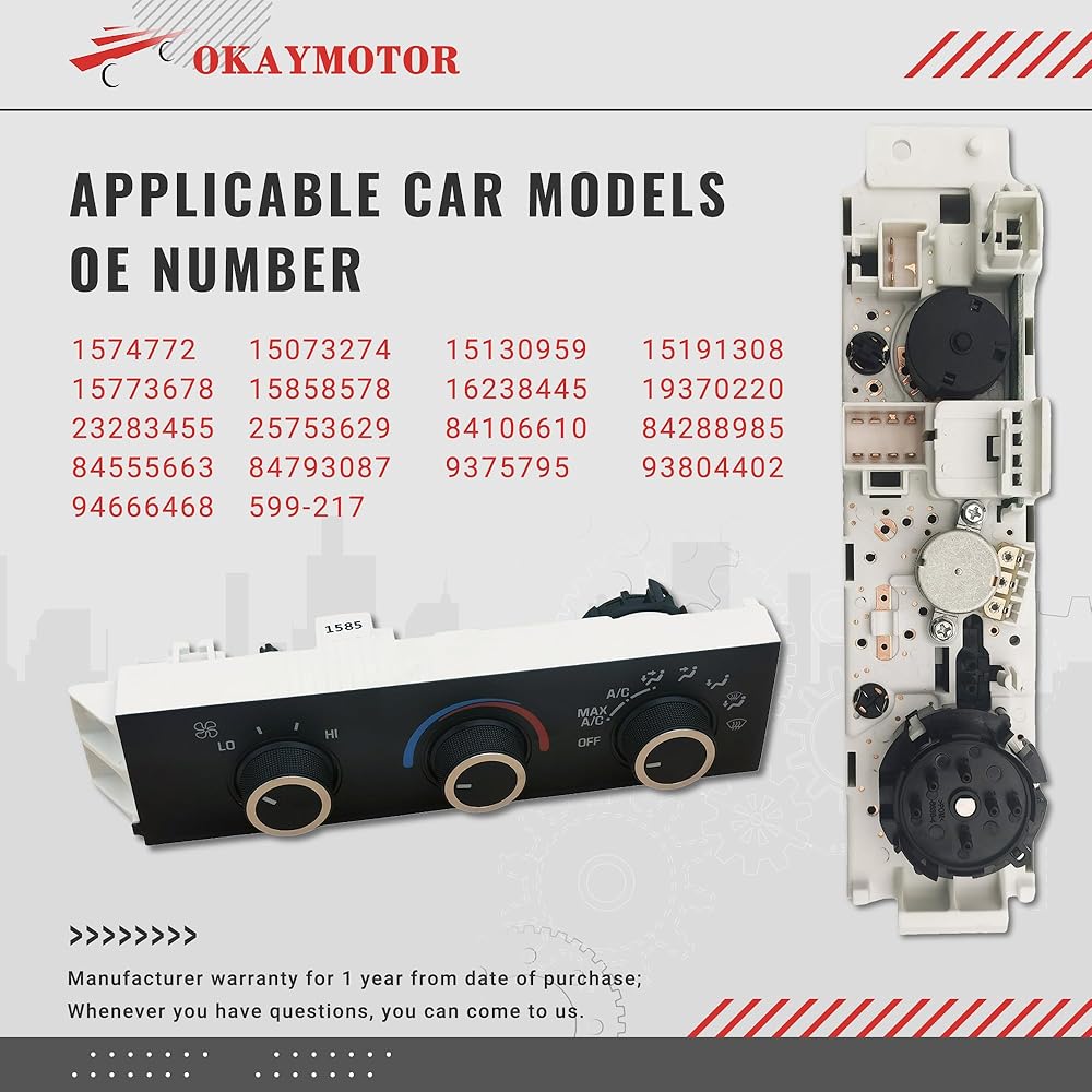 【Fitment】: Air Conditioning Control Panel Climate Control Module for Chevrolet Express 1500/2500/3500/4500/5500/Cargo/Pasajeros; for Chevrolet C4500/C5500/C6500/C7500/C8500 Kodiak; for Chevrolet Astro; for Chevrolet G30; for GMC Savana 1500/2500/3500/4500; for GMC C4500/C5500/C6500/C7500/C8500 Topkick; for GMC Safari; for GMC G3500.