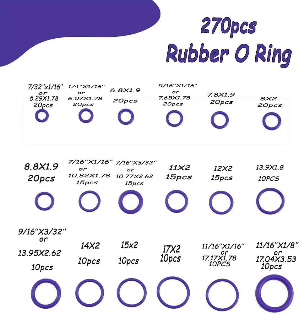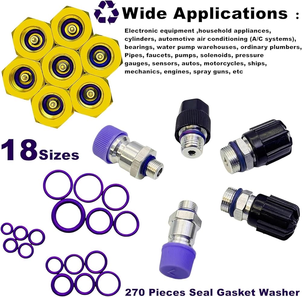 Package Include:Assorted 270pcs Rubber O-ring Seal Gasket with different sizes. Designed for most car air conditioning.