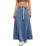 تنورة طويلة من الدنيم خفيفة الوزن وملونة، ومصنوعة لتكون متعددة الاستخدامات. تنورة ماكسي بتصميم مستوحى من الملابس البوهيمية للنساء، توفر هذه التنورة ثنية طويلة تضيف الحركة والأناقة إلى أي مجموعة. تتميز التنورة بخصر مرن مريح مع رباط، ويمكن أن تناسب أنواع الجسم المتنوعة