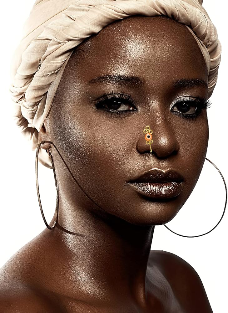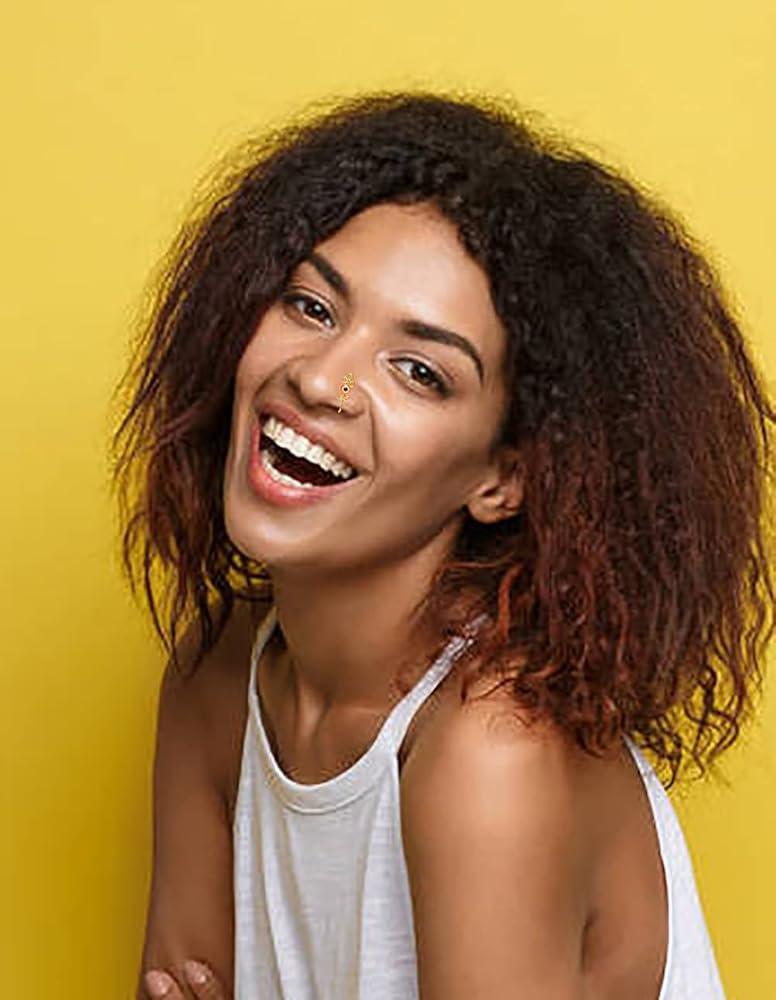 المادة-- أساور الأنف الخاصة بنا سهلة الارتداء، وسهلة ضبط إحكامها؛ يمكن تعديل كل حلقات أنف صناعية قليلاً لتناسب أحجام الأنف المختلفة. إنها مصنوعة من سبيكة مطلية بالذهب الحقيقي عيار 14 قيراط، بدون نيكل أو رصاص، ولا تسبب الحساسية، وخفيفة الوزن.