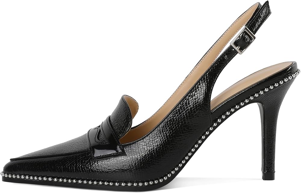 【تصميم حذاء بدون كعب بمقدمة مدببة】يضيف الكعب العالي الكلاسيكي ذو الكعب العالي مع تصميم حذاء لوفر أنيق عنصرًا عصريًا وأنيقًا، مما يجعله مثاليًا للمناسبات الرسمية أو غير الرسمية. يعزز تصميم المقدمة المدببة المظهر العام الأنيق والعصري، مما يضمن أن مجموعتك مواكب للموضة ومواكب للموضة.