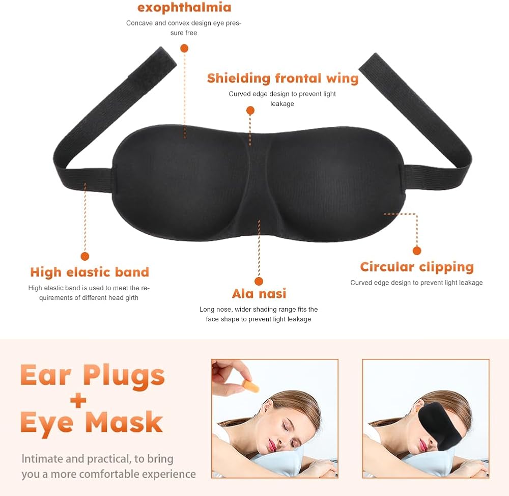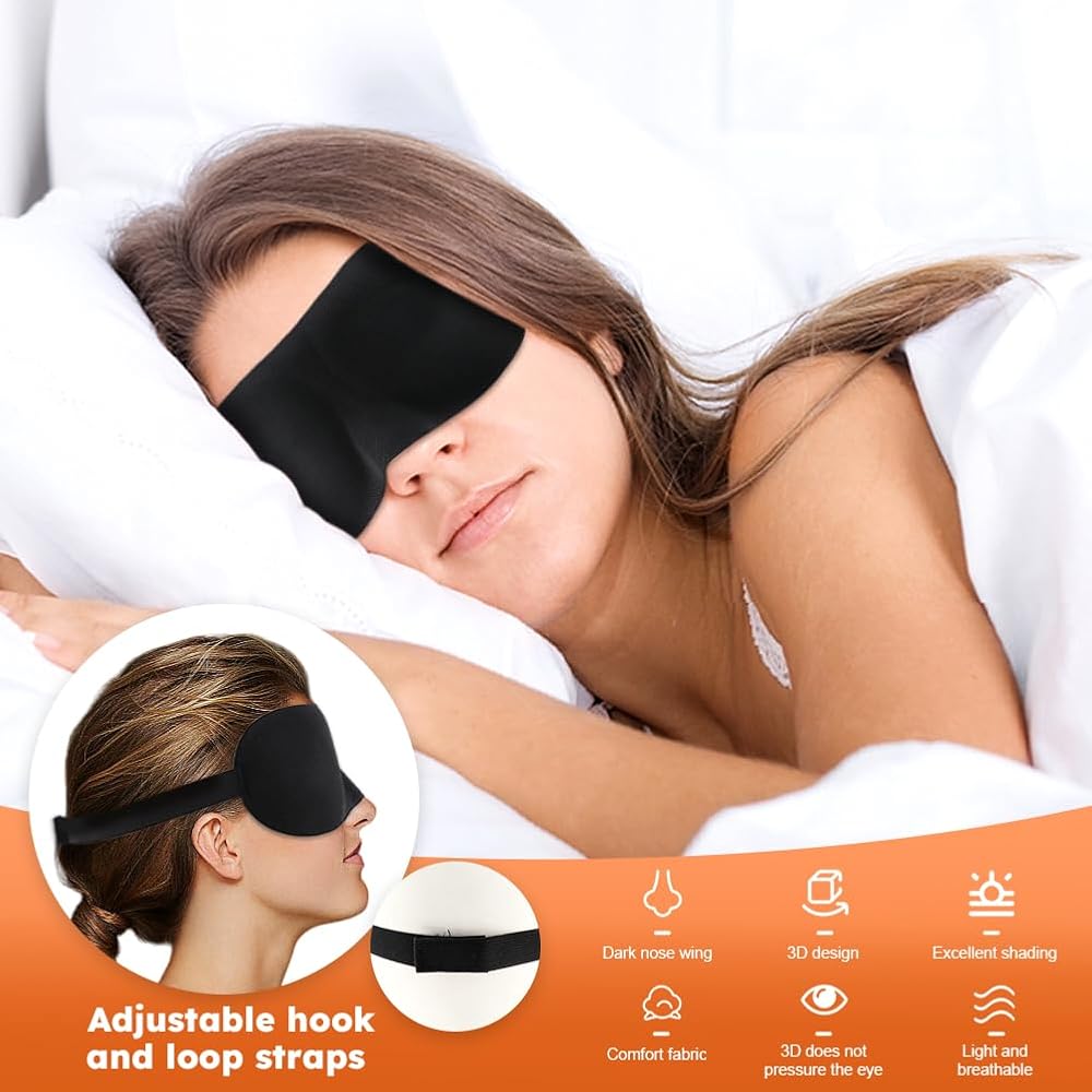 【EYE COVER】The eye cover is made of soft polyester, skin-friendly, smooth, breathable, lightweight, reusable, washable. The 3D groove design fits the eyes and reduces eye pressure, and the three-dimensional nose wing design has better light-shielding effect. Elastic band and adjustable hook and loop straps fit different head sizes.