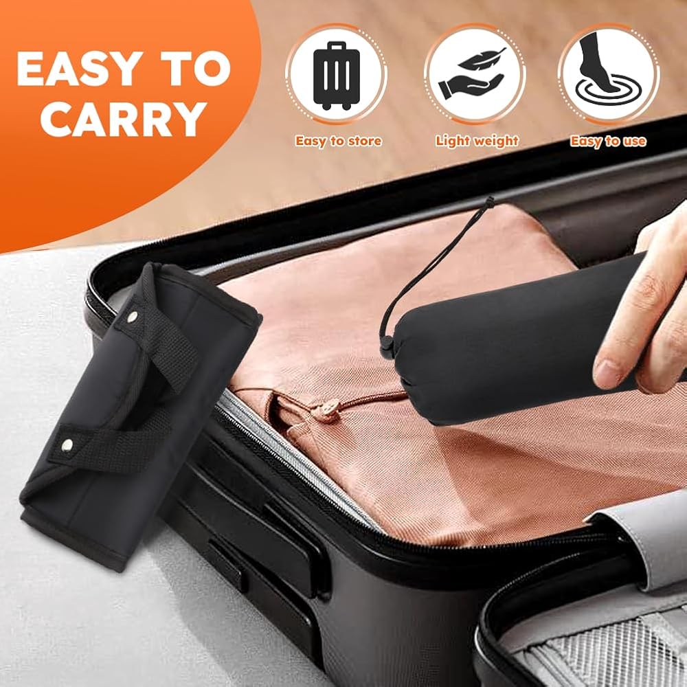 【DURABLE MATERIAL】The travel footrest is made of wear-resistant nylon fabric with built-in sponge ventilation holes, which is soft and well supportive. The metal rivet reinforcement belt is more durable and stable. Foldable and easy to carry.