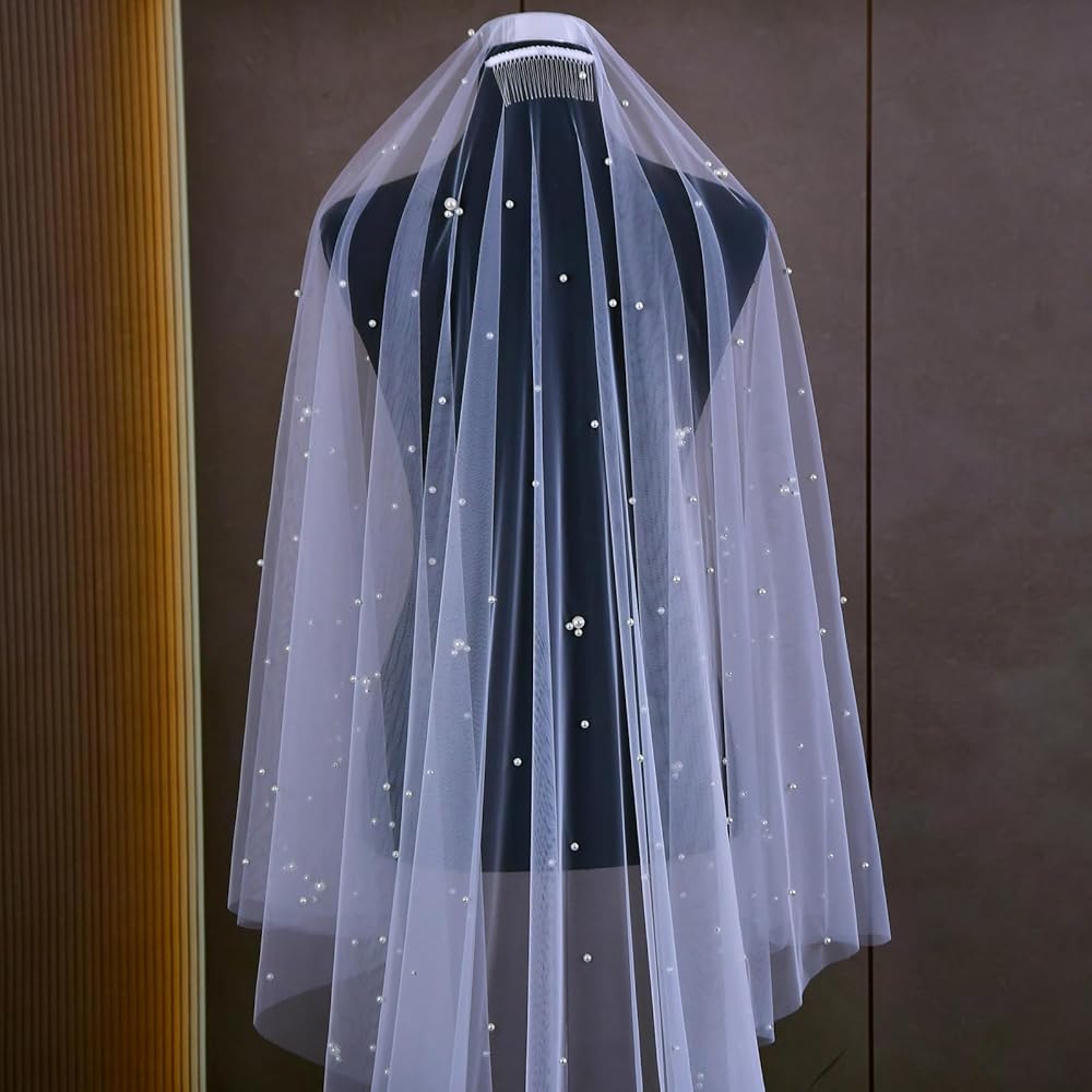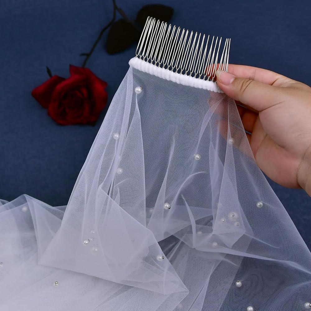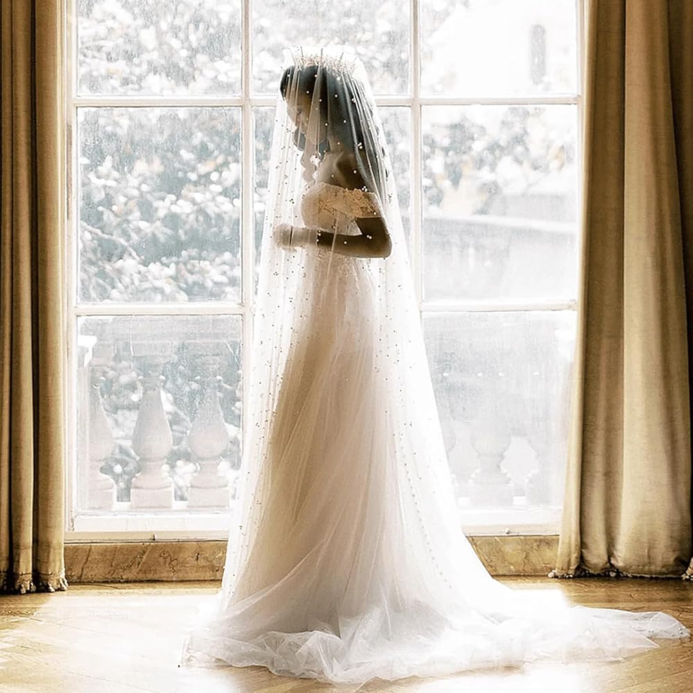 طرحة زفاف نسائية لؤلؤية، حجاب زفاف بسيط على شكل كنيسة لحفلات الزفاف بطول 2 متر إكسسوارات العروس العاجية
