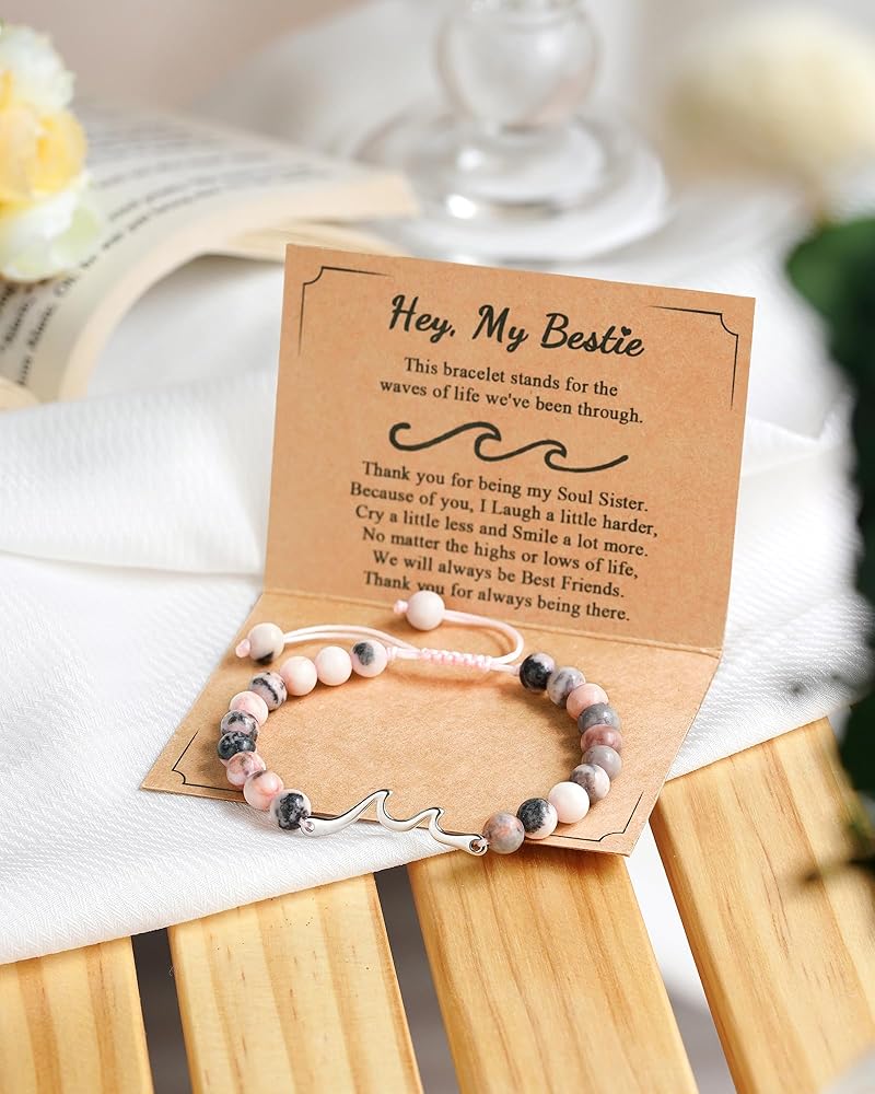 [هدايا الصداقة للنساء والفتيات المراهقات] - "يرمز هذا السوار إلى موجات الحياة التي مررنا بها. شكرًا لك على تواجدك دائمًا، سأكون ضائعًا جدًا بدونك." بغض النظر عن الارتفاعات أو الانخفاضات، فإن صداقتنا سوف تنمو فقط