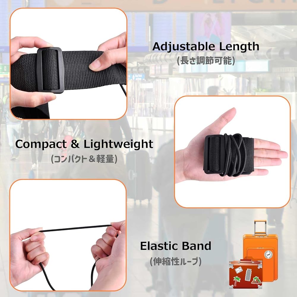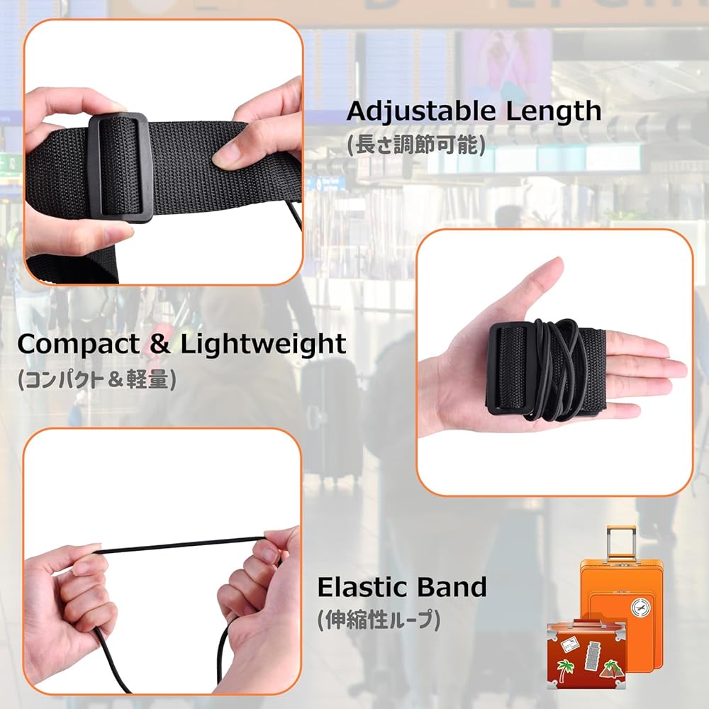 💼 اجعل السفر سهلاً: يتيح لك استخدام أحزمة الأمتعة تأمين الحقائب أو السترات أو حقائب السفر المحمولة أو الصناديق في أمتعتك المحمولة أو ذات العجلات. يمكنها أيضًا حمل الحقائب أو مستحضرات التجميل المعبأة في صناديق والتي قد تحتاج إلى الوصول إليها في أي وقت، مما يمنعها من الضياع