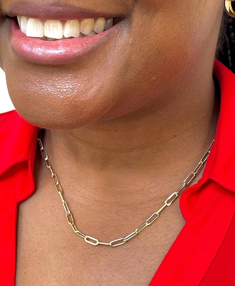 • SIZE: This 18 inch 14k Gold necklace is made up of polished 3mm x 8mm ovals that create the popular "paperclip" or open link style.