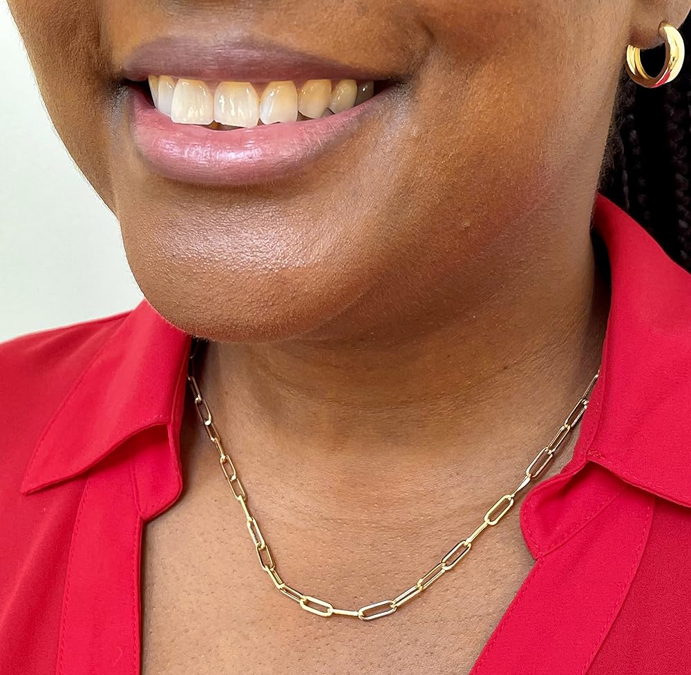 Show off your style in this beautiful and classic 14k Yellow Gold Paperclip Necklace. Measuring at 18 inches in length, it is the perfect size for any occasion. Each necklace is made up of 3mm x 8mm oval links to create the highly trending paperclip style. Each necklace comes neatly packaged in an attractive LooptyHoops jewelry gift box along with instructions on wearing and caring for your jewelry and a discount code valid on future purchases. This necklace is 14k gold. It is not plated.