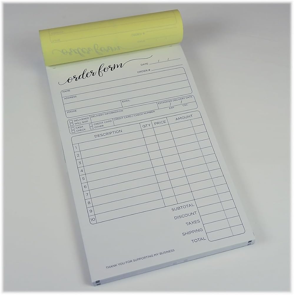Offer a professional looking business form with this preprinted 2-part carbonless order form book. Ideal for small business use. Easy to write on with pens or pencils. Perforatted for easy sheet removal.