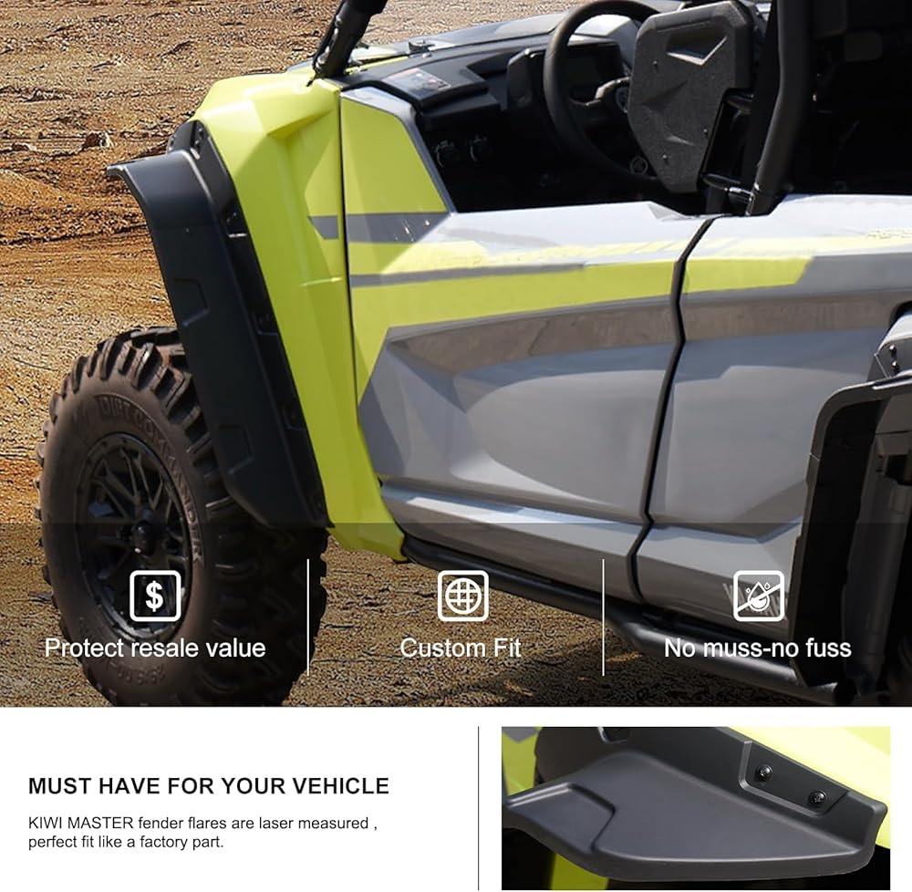 ▶ DURABLE HDPE FENDER FLARES FOR RMAX4 1000 - Made from tough High Density Polyethylene (HDPE) to save weight and ensure strength and durability for any type of riding or racing.Keeping the mud from reaching the interior cab over the wheels.Keeping the floor area free of dirt and mud.